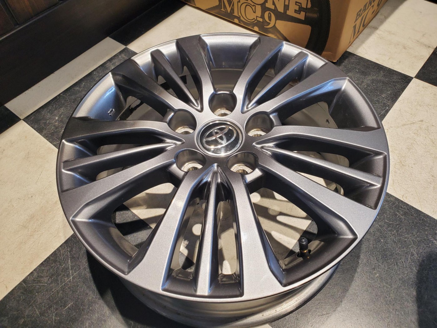 トヨタ純正のガンメタカラーのホイールのガリ傷でお困りのお客様よりリペアのご依頼をご依頼をいただきました。