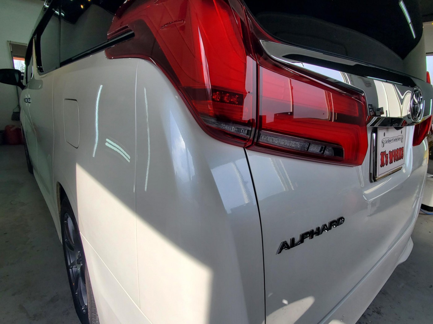 先ず初めに、ボディークレンジングからのボディー磨きにて雨染みや洗車傷をリセットして、TAIMA(コーティング結合研磨液)にて下地処理をしっかりと施工してから、ガラスコーティングのグロスアーマーを塗り込みして施工完了!
