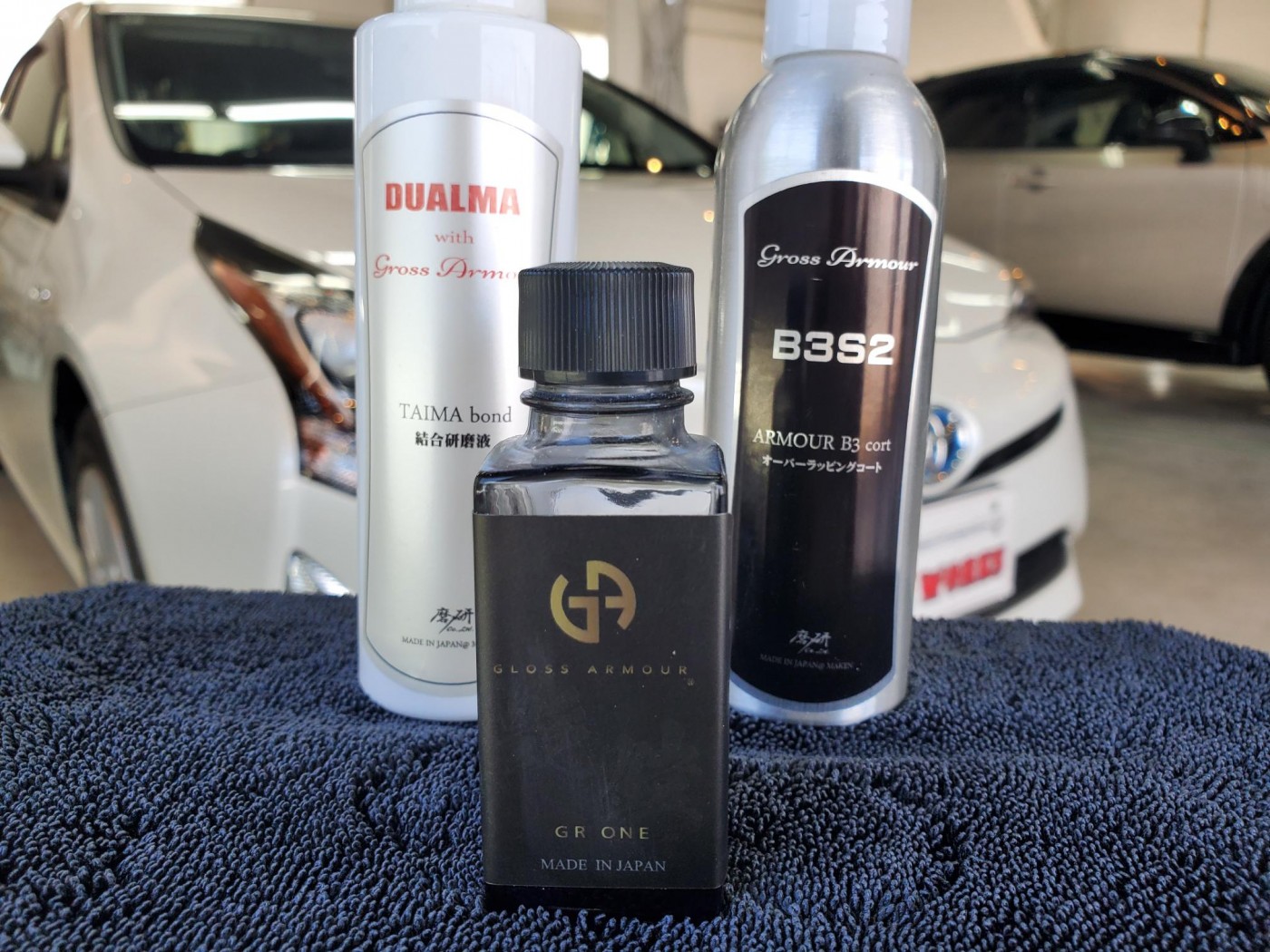 先ず初めに、ボディークレンジングからのボディー磨きにて雨染みや洗車傷をリセットして、TAIMA(コーティング結合研磨液)にて下地処理をしっかりと施工してから、ガラスコーティングのグロスアーマーを塗り込みして施工完了!