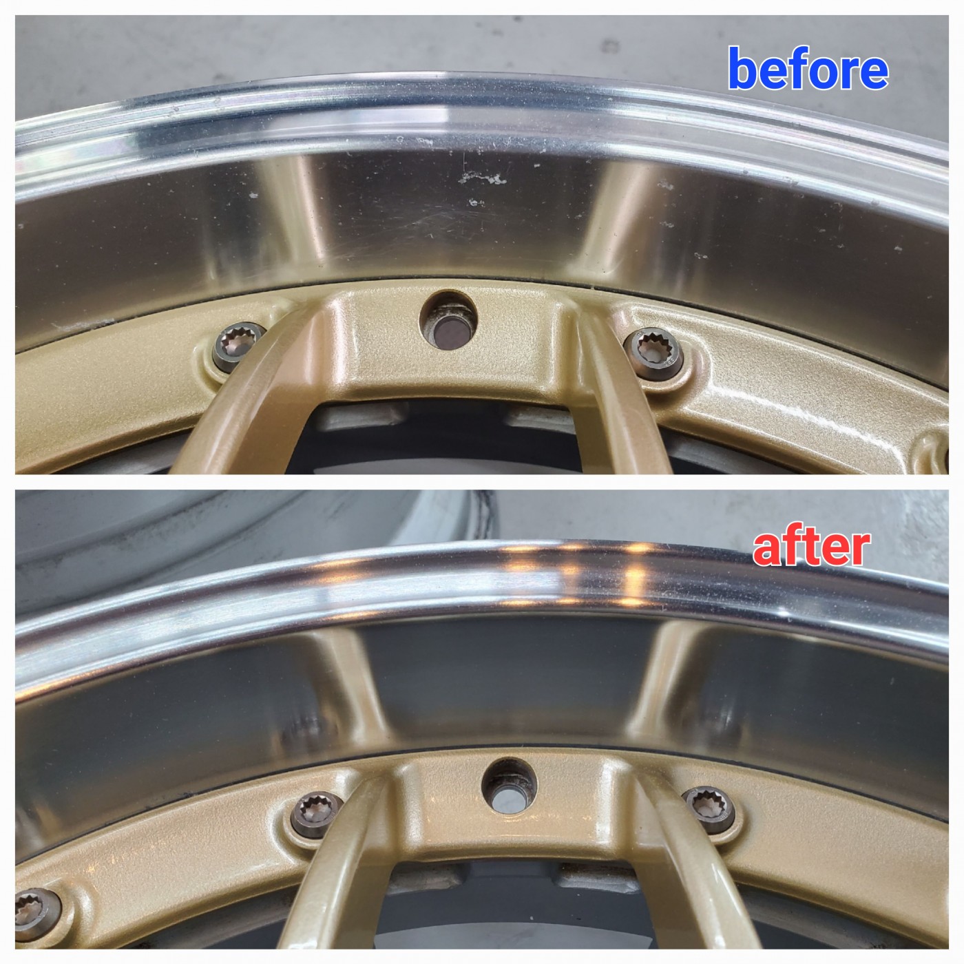 BBSのポリッシュ仕上げのホイールリムの腐食とすり傷でお困りのお客様からリペアのご依頼をいただきました。