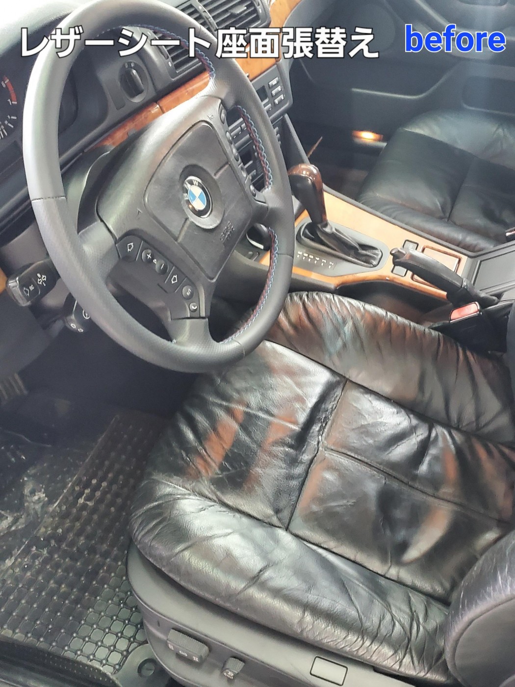 愛車のレザーシートの座面が経年劣化による破れ、たるみ、ひび割れが出来ていてお困りのお客様よりご依頼をいただきました。
