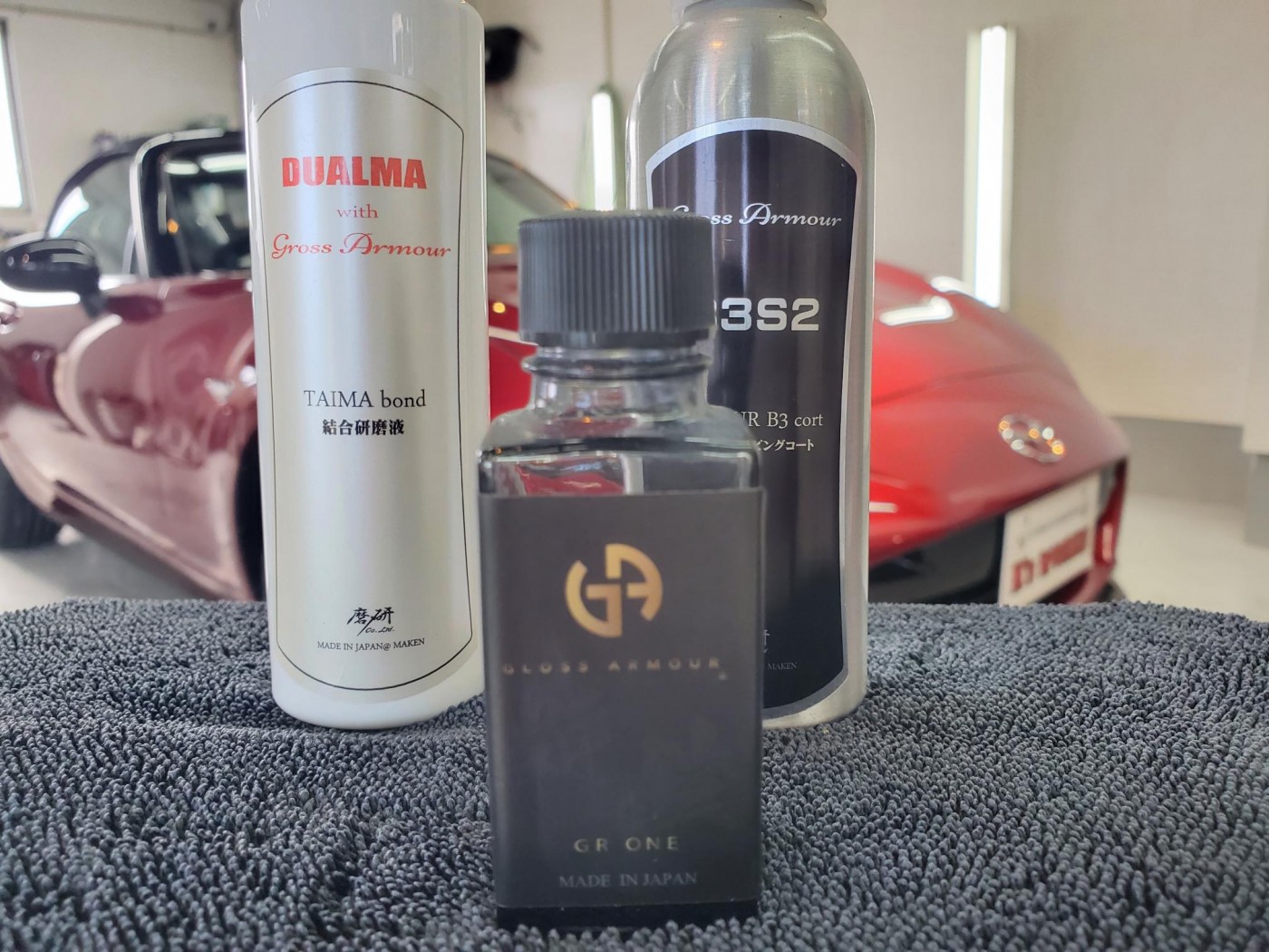 先ず初めに、ボディークレンジングからのボディー磨きにて雨染みや洗車傷をリセットして、TAIMA(コーティング結合研磨液)にて下地処理をしっかりと施工してから、ガラスコーティングのグロスアーマーを塗り込みして施工完了!