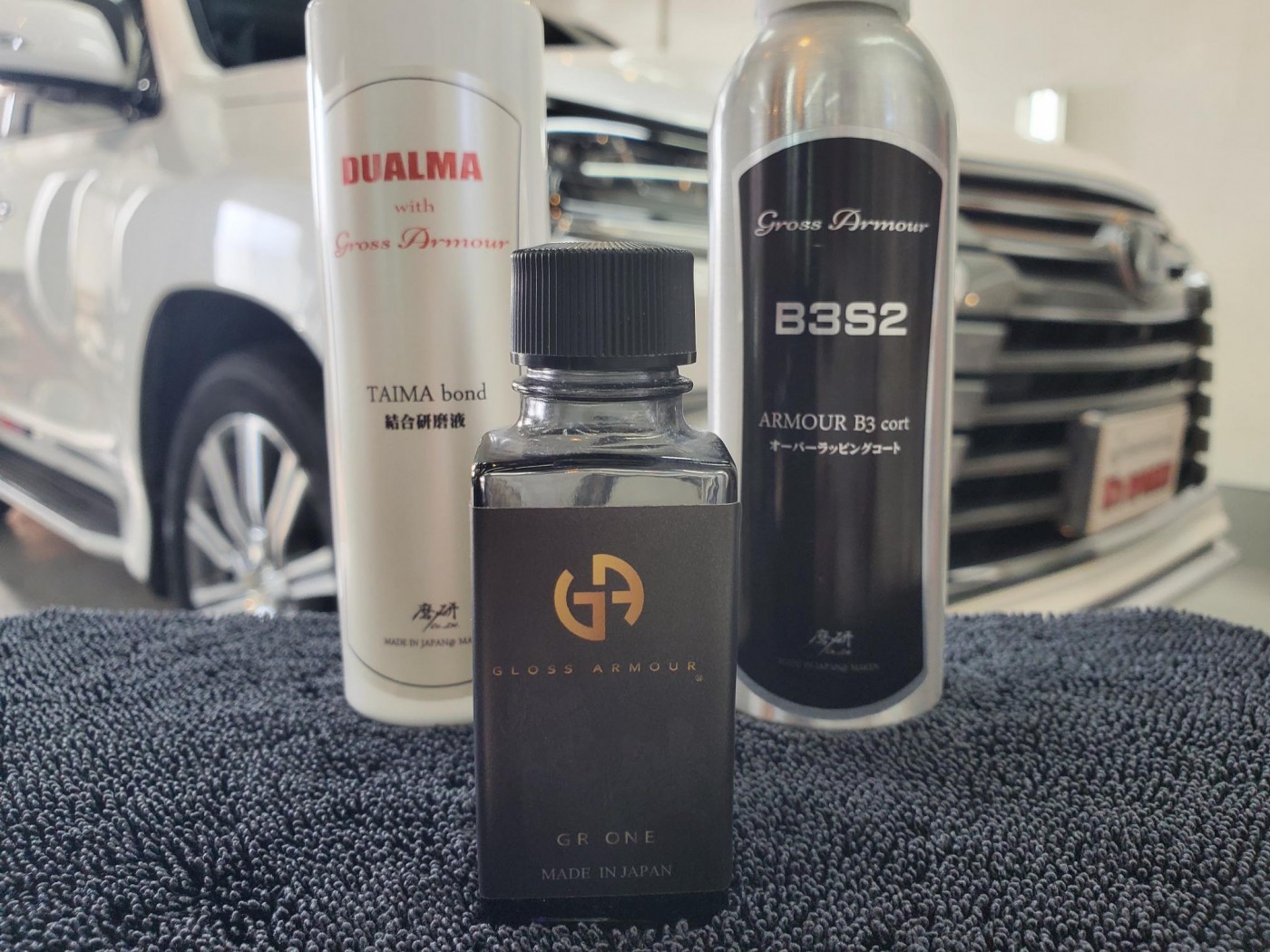 先ず初めに、ボディークレンジングからのボディー磨きにて雨染みや洗車傷をリセットして、TAIMA(コーティング結合研磨液)にて下地処理をしっかりと施工してから、ガラスコーティングのグロスアーマーを塗り込みして施工完了!