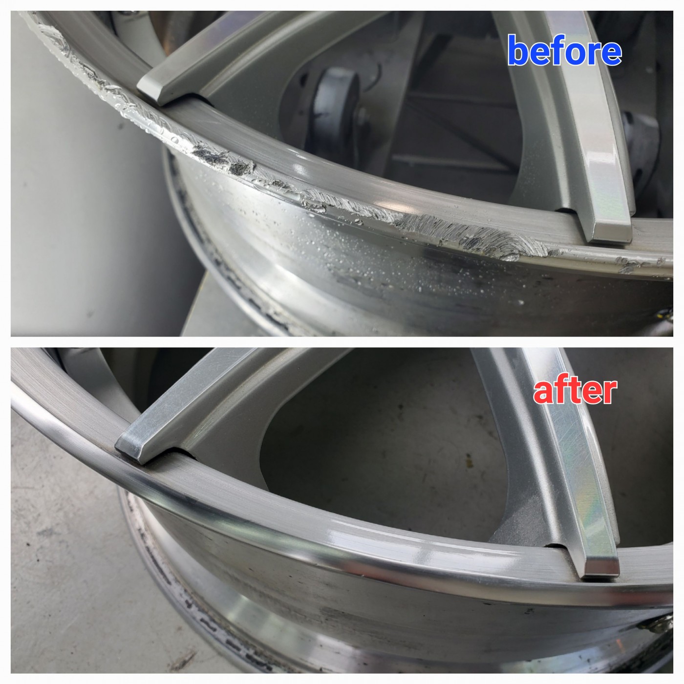 ポリッシュ仕上げのリム部のがり傷でお困りのお客様からリペアのご依頼をいただきました。