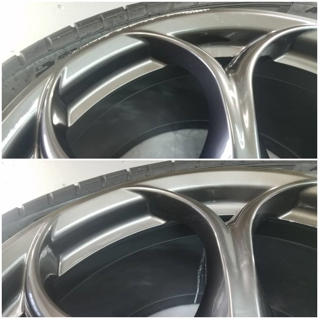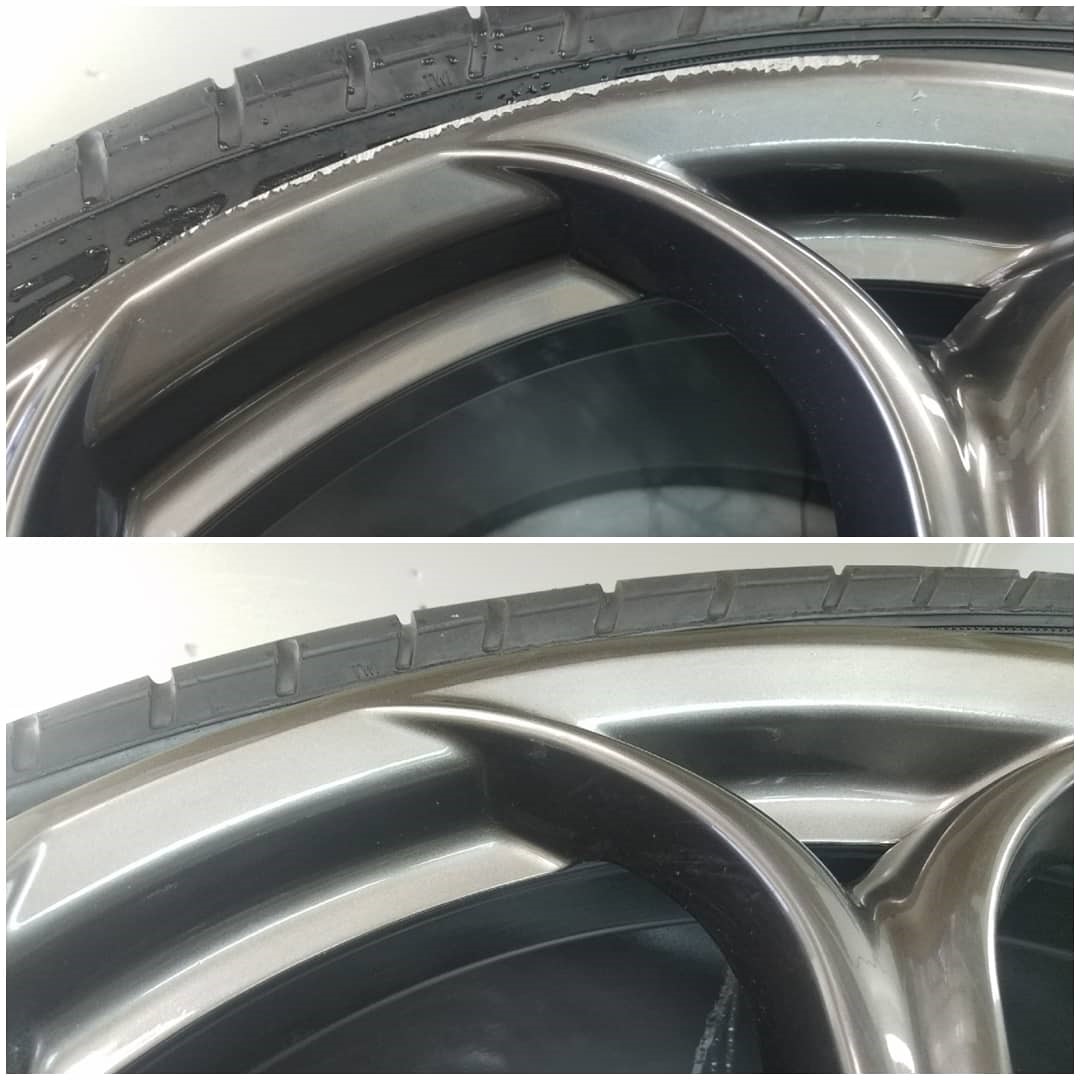 路肩に停車時、寄せすぎによるホイールリム部のガリ傷。。。がっかりですよね。