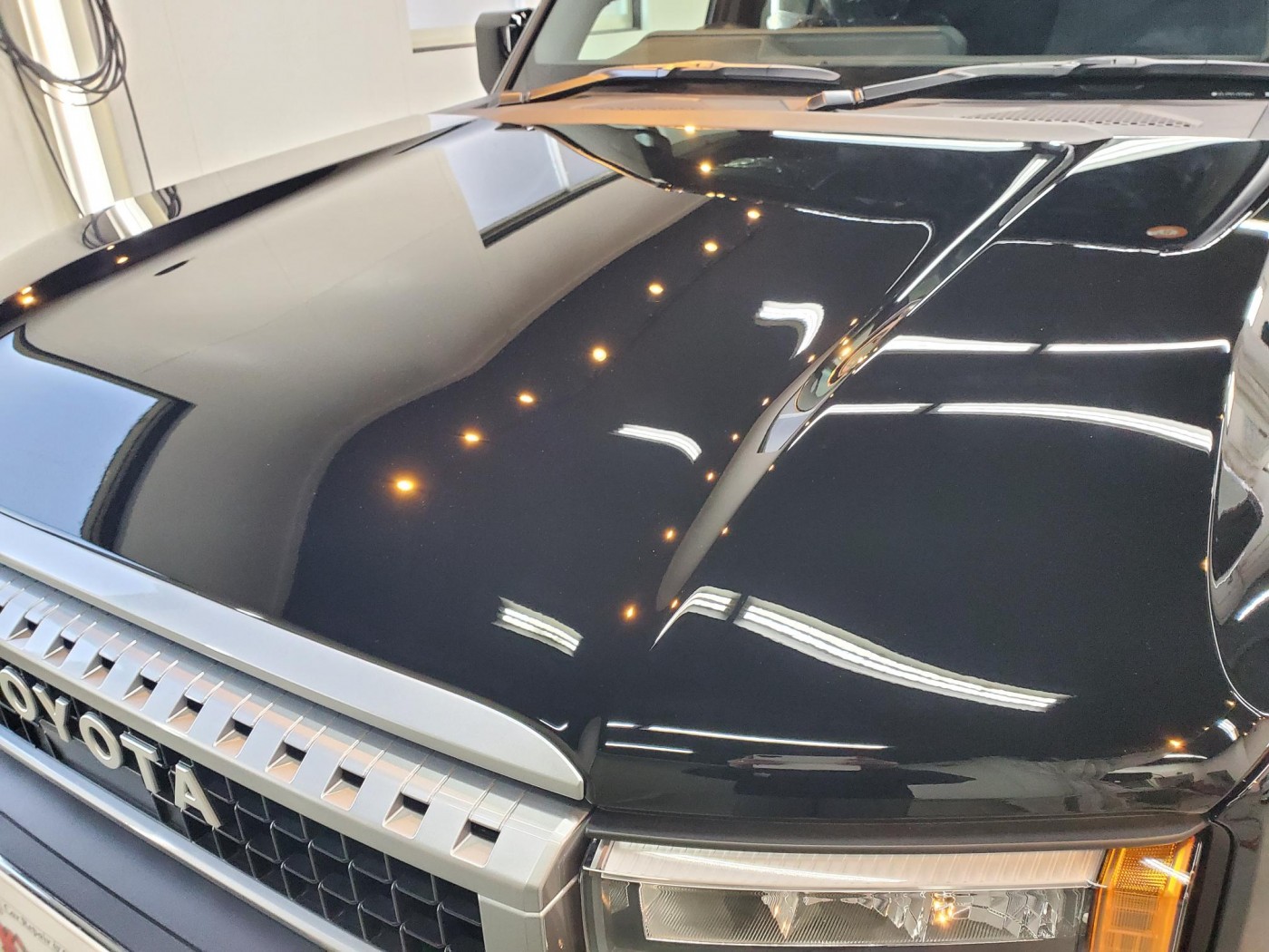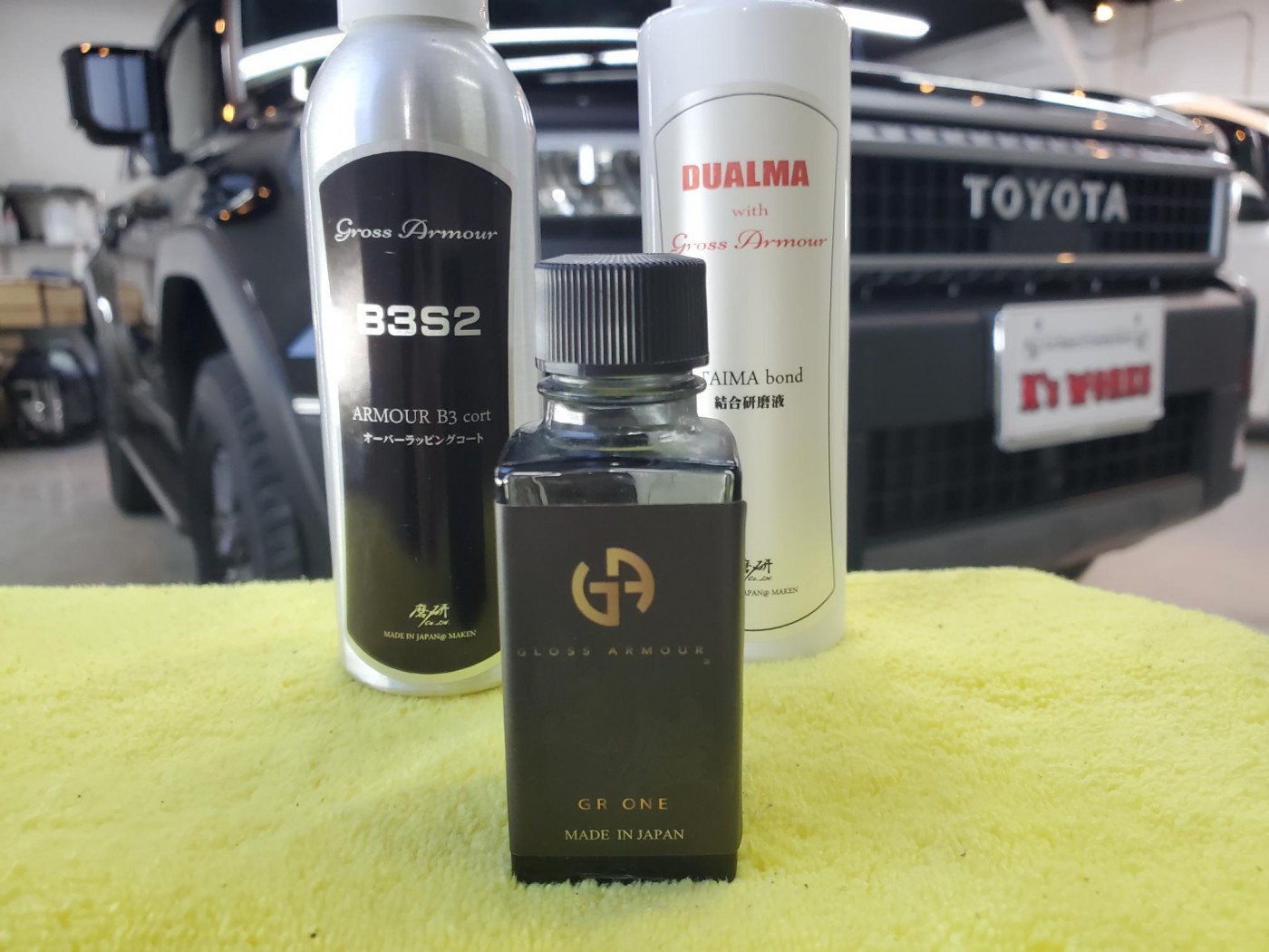 先ず初めに、ボディークレンジングからのボディー磨きにて雨染みや洗車傷をリセットして、TAIMA(コーティング結合研磨液)にて下地処理をしっかりと施工してから、ガラスコーティングのグロスアーマーを塗り込みして施工完了!
