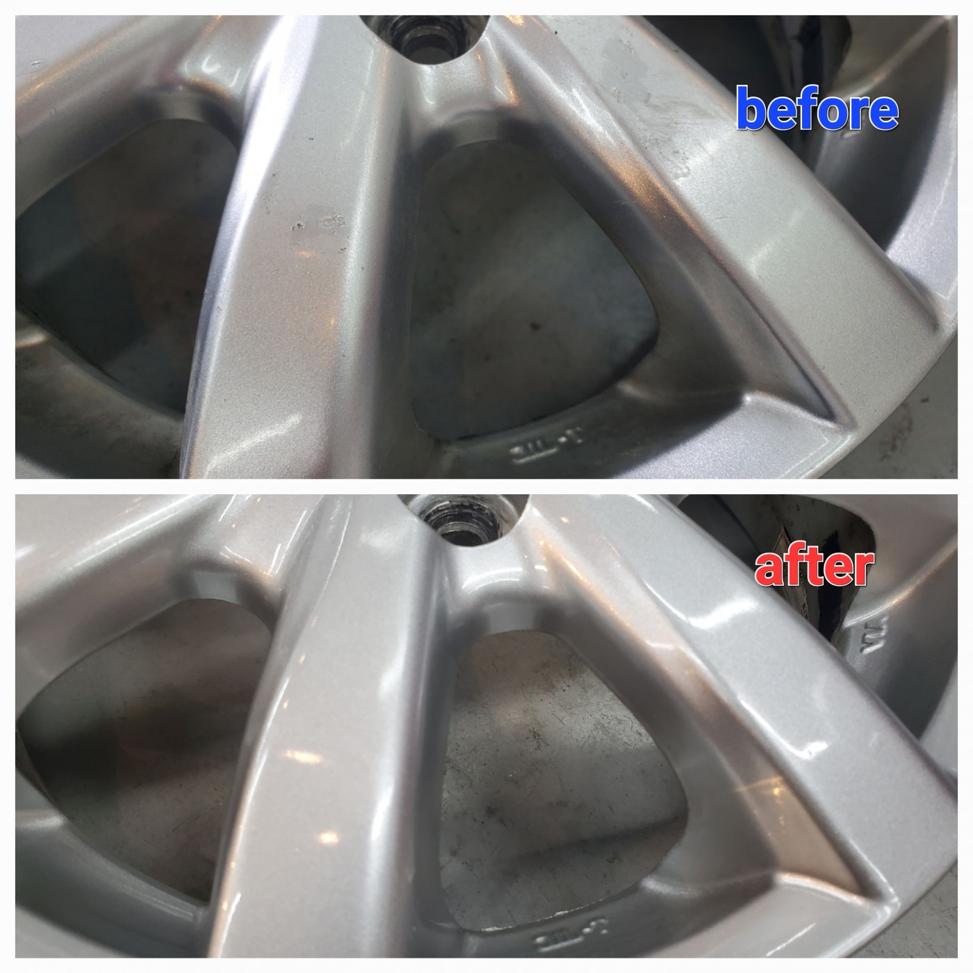 車両事故の際にシルバーカラーのホイールにもガリ傷が付いていてお困りのお客様よりリペアのご依頼をご依頼をいただきました。