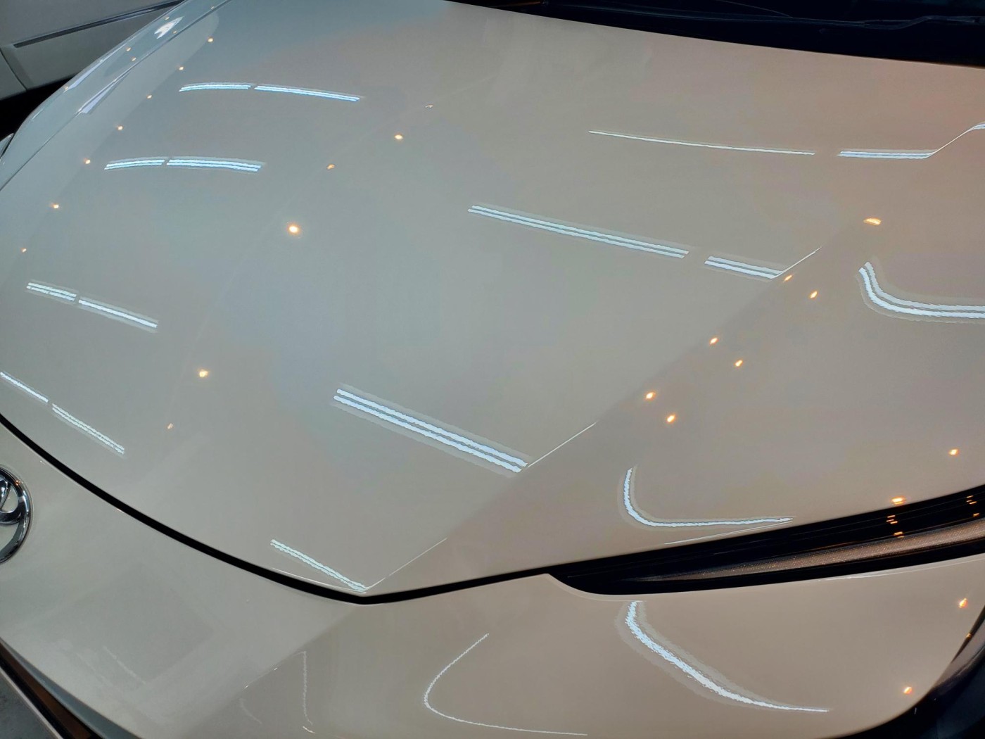 展示車両のボディーに付着した雨染みや洗車傷の除去と車内クリーニングをして欲しいと、自動車販売店様よりご依頼をいただきました。