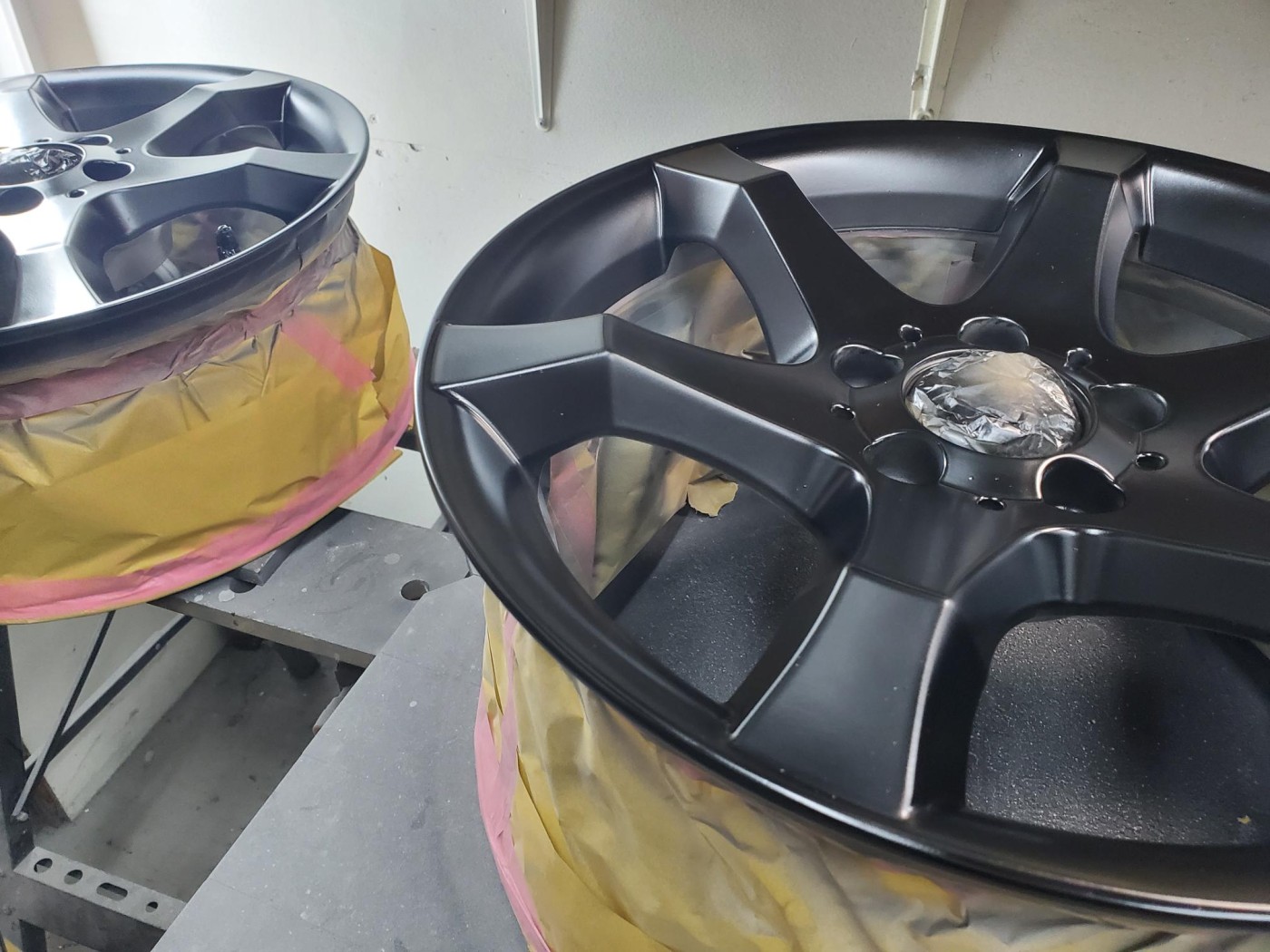 ベンツ純正のホイールをシルバーからマットブラック(七分艶)にカラーチェンジのご依頼をいただきました。