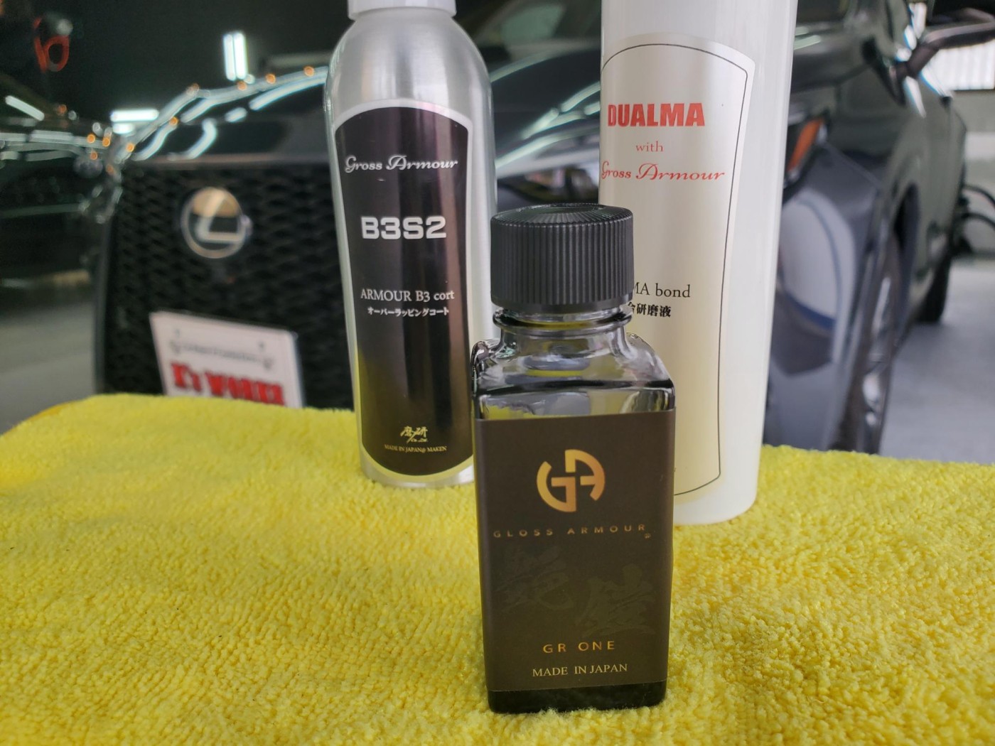 先ず初めに、ボディークレンジングからのボディー磨きにて雨染みや洗車傷をリセットして、TAIMA(コーティング結合研磨液)にて下地処理をしっかりと施工してから、ガラスコーティングのグロスアーマーを塗り込みして施工完了!