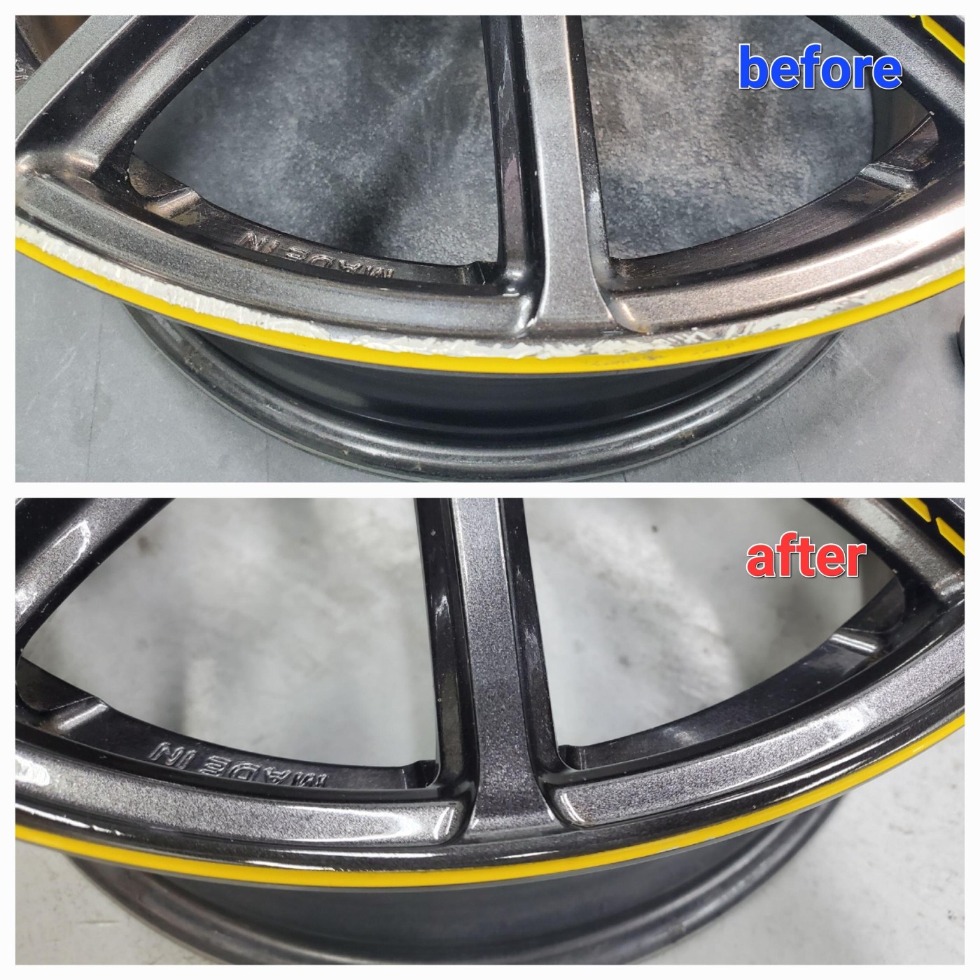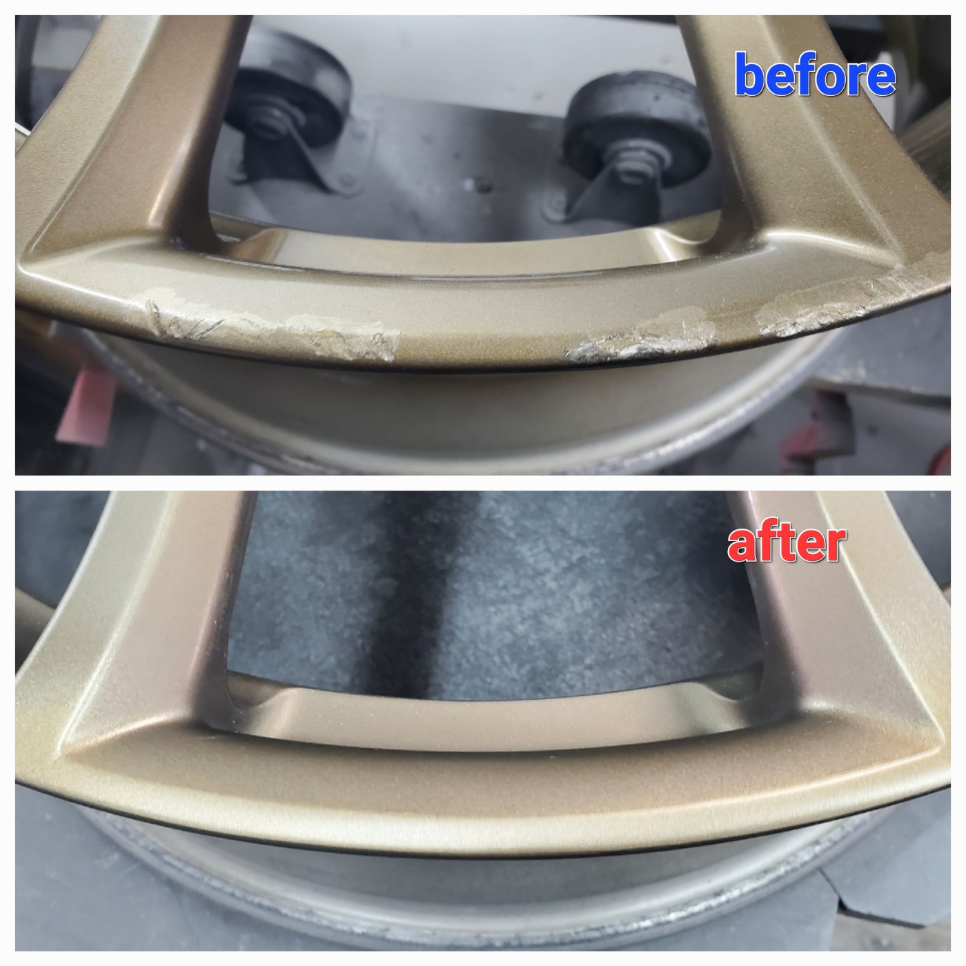 どちらのホイールも、がり傷がすっかり無くなり色差もなく綺麗になったホイールの仕上がりにとてもお喜びになられてよかったです。