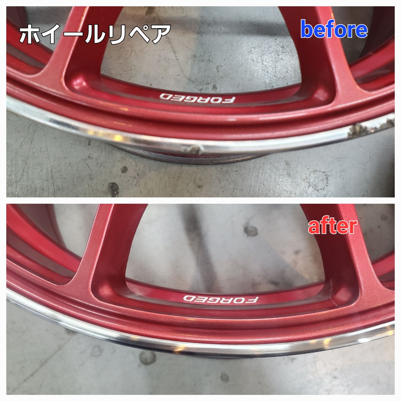 がり傷がすっかり無くなり綺麗になったホイールの仕上がりにとてもお喜びになられてよかったです。
