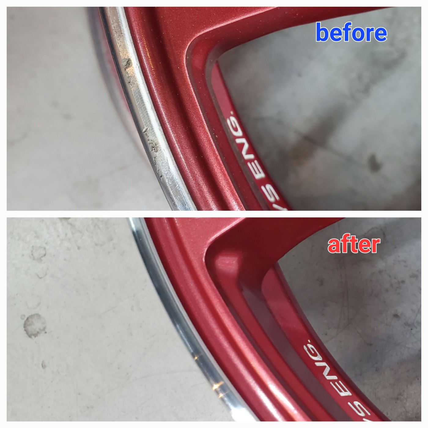 RAYSのポリッシュリムのがり傷でお困りのお客様からリペアのご依頼をいただきました。