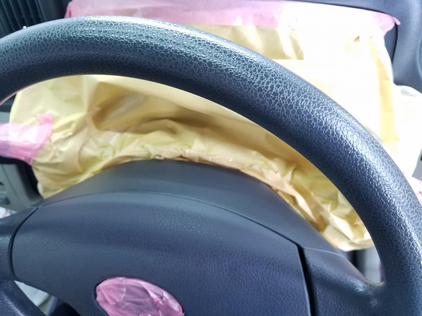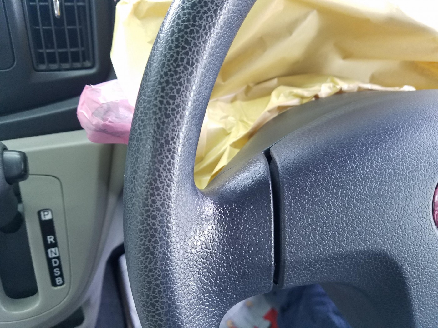 ステアリングの擦れ傷、色あせ等によるトラブルの下地処理をして