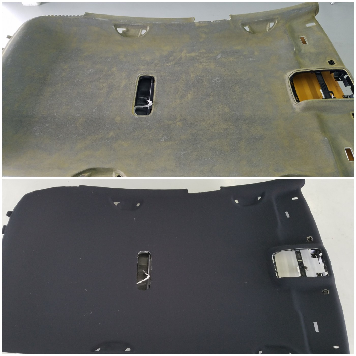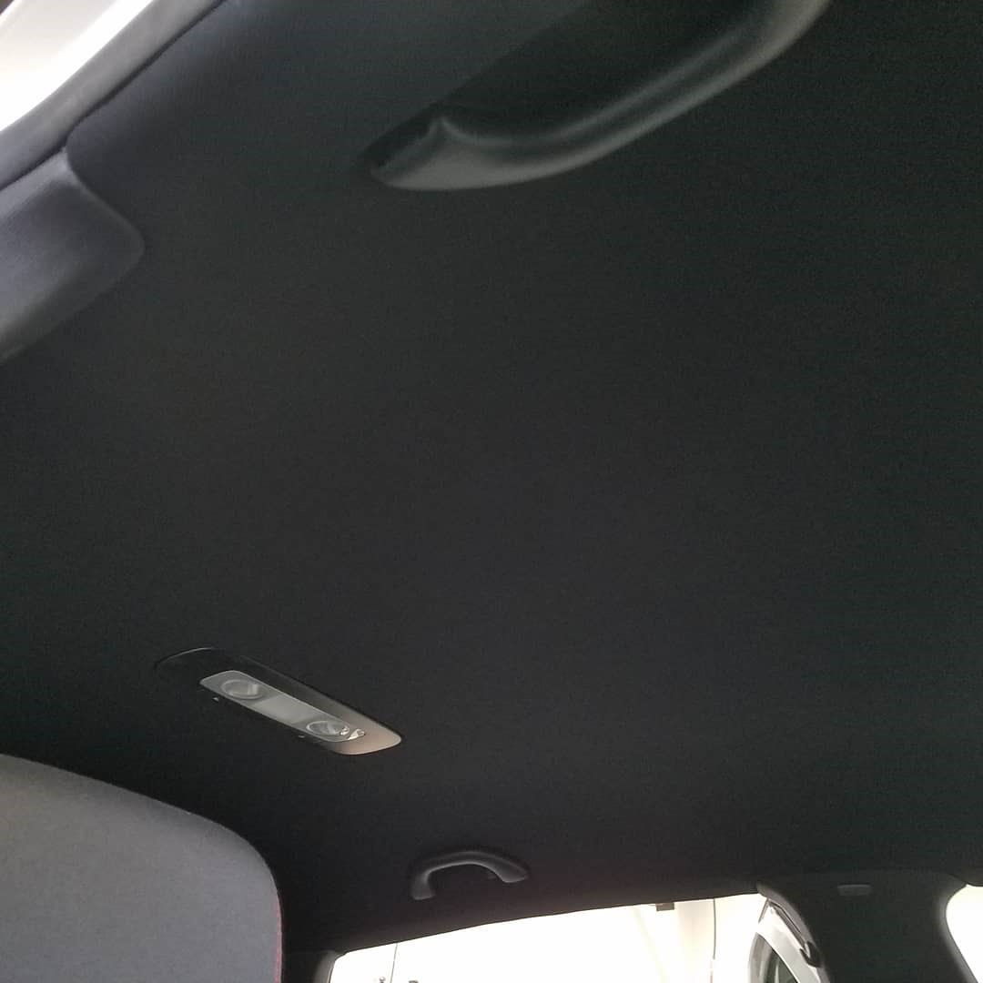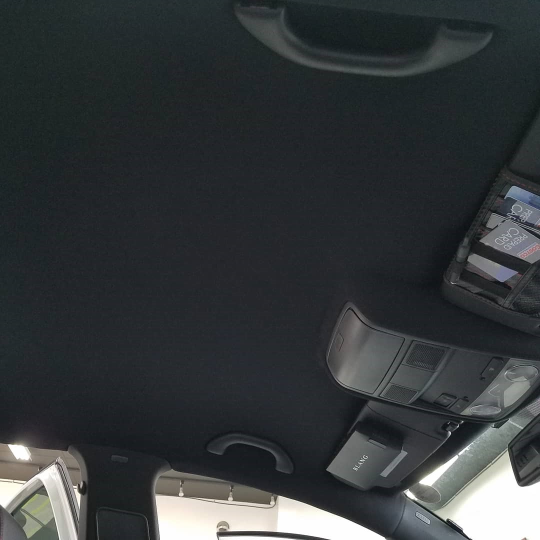 輸入車に多いルーフライニング剥がれのため、張替えのご依頼をいただき施工させて頂きました。