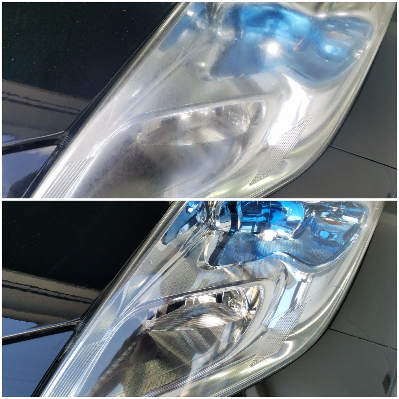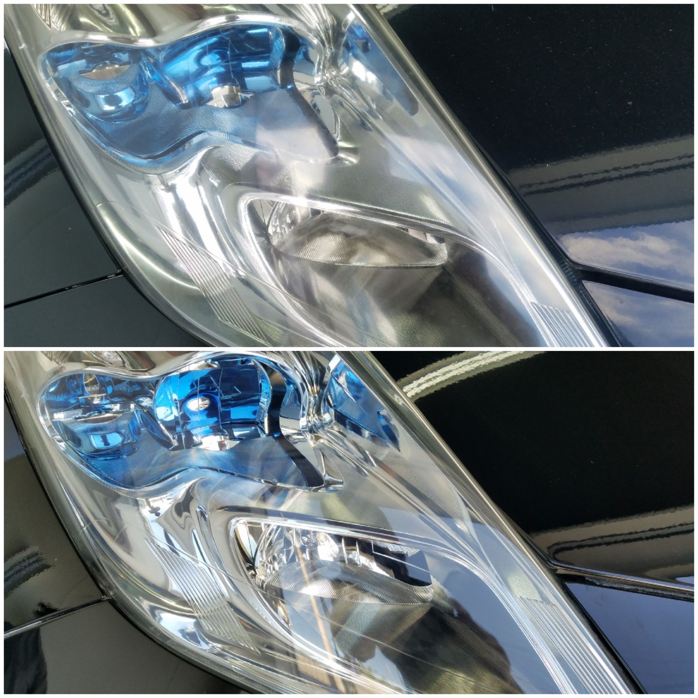 最後にヘッドライトの擦り傷をリペアして施工完了。