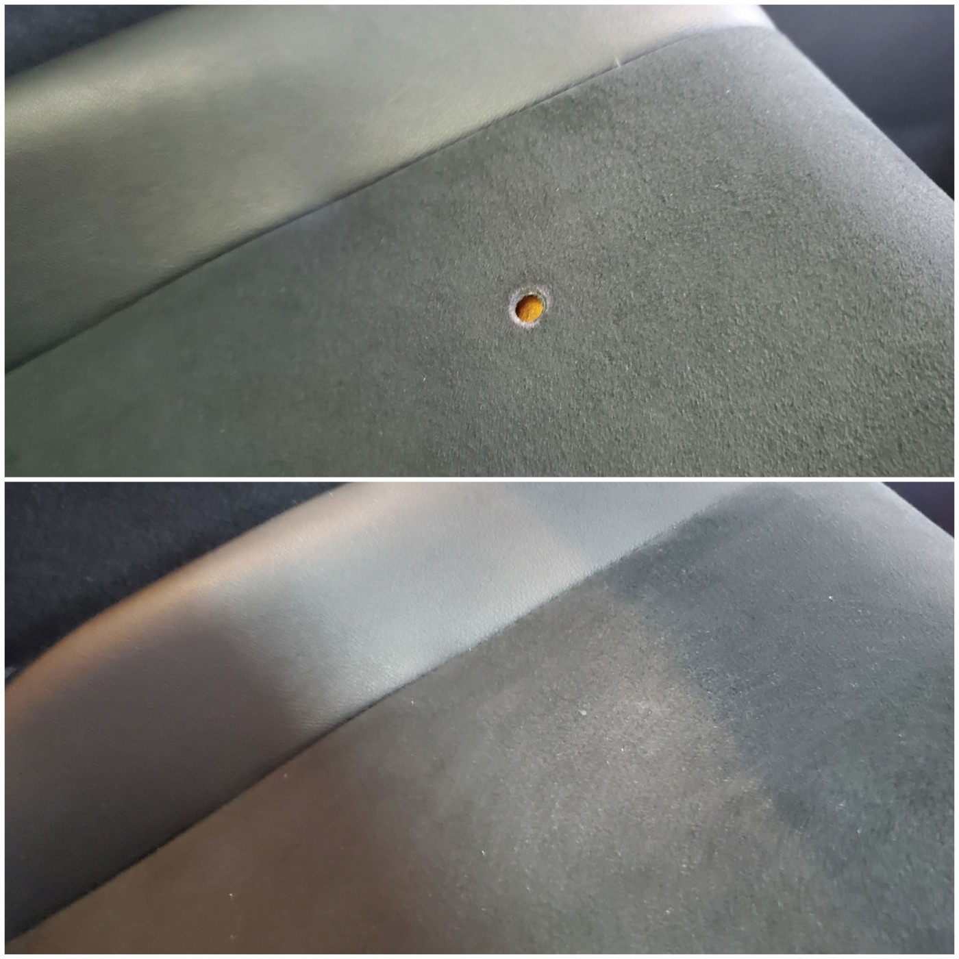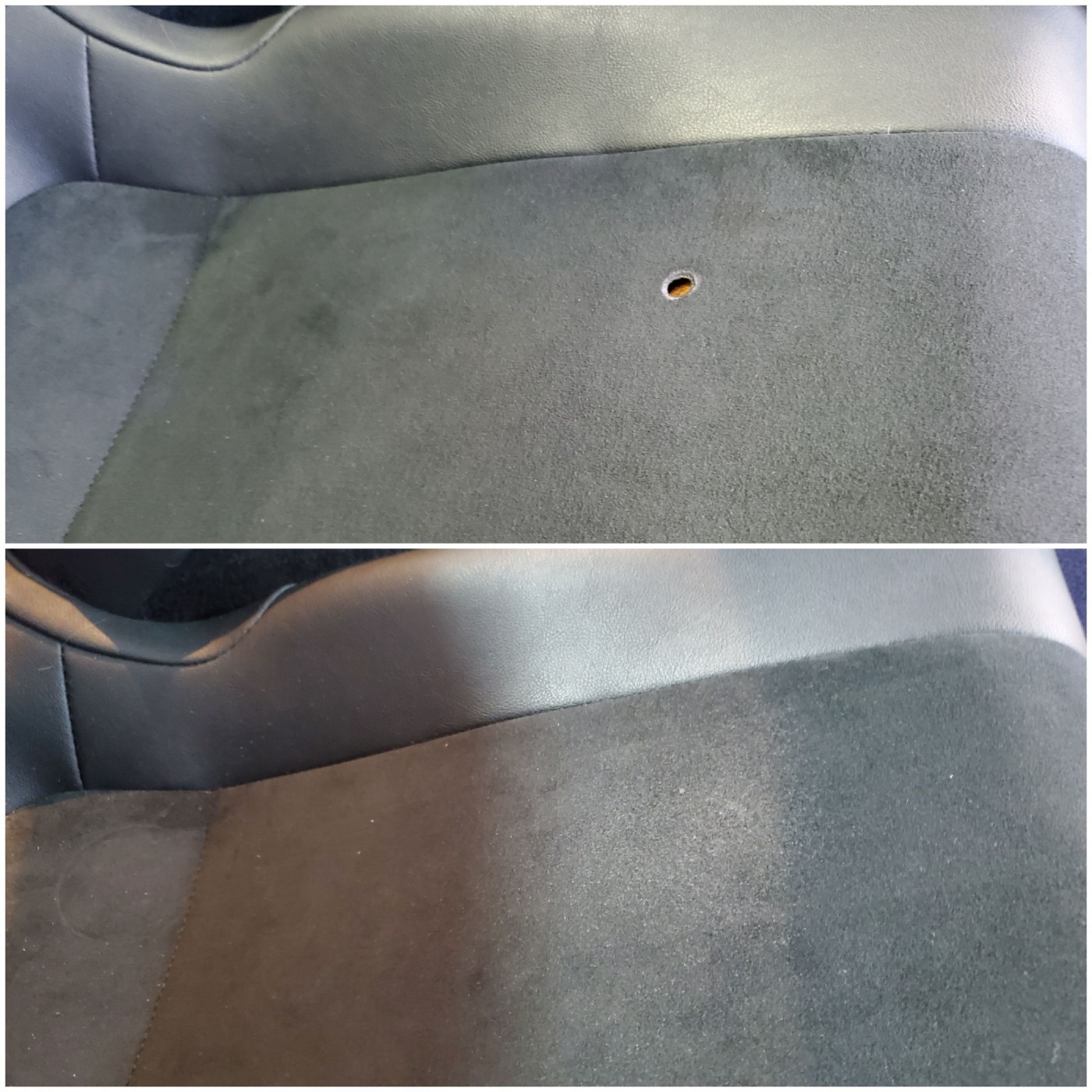 下取りした車両の後部座席の座面に煙草の焦げ穴があるため、シートリペアと
