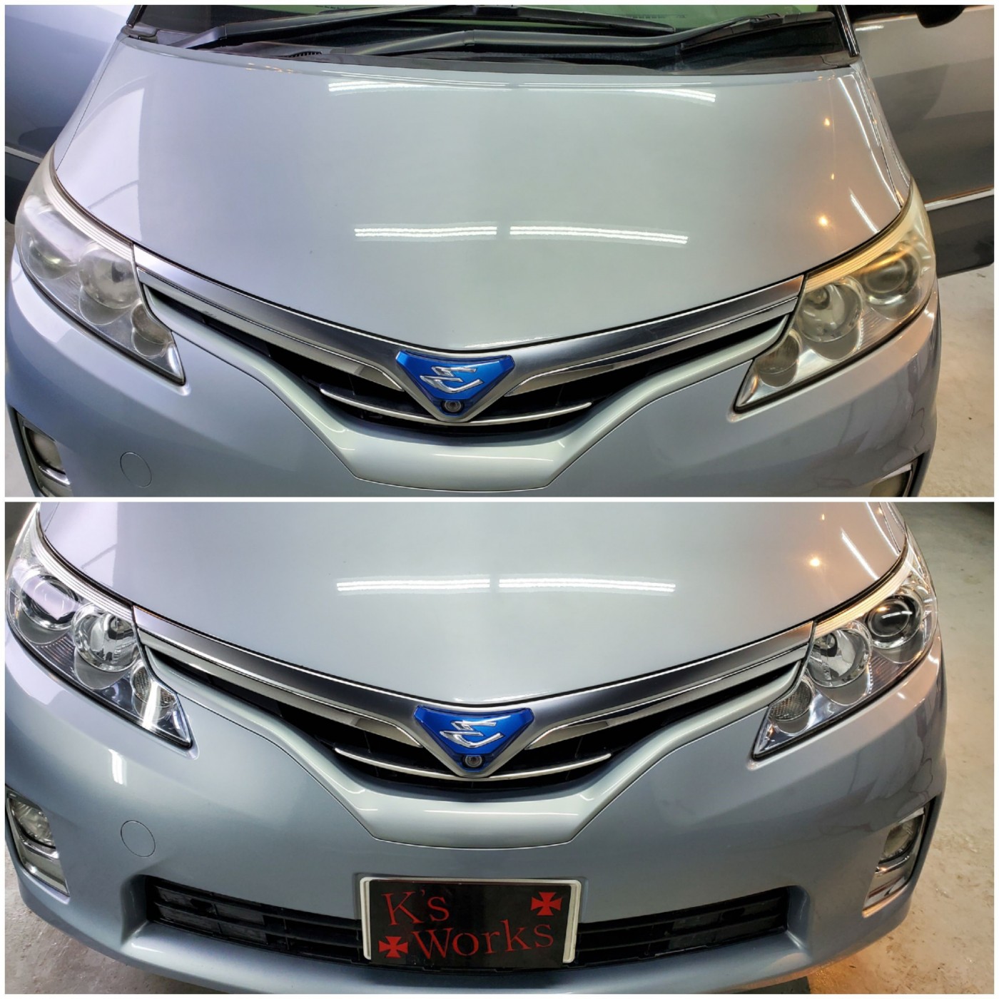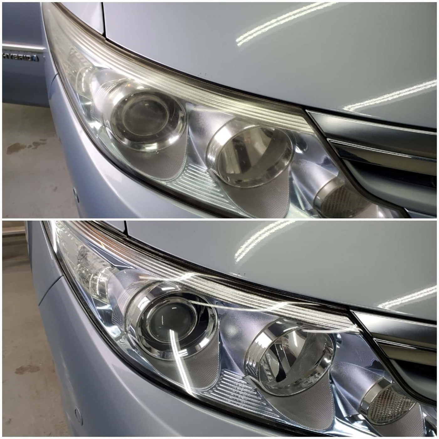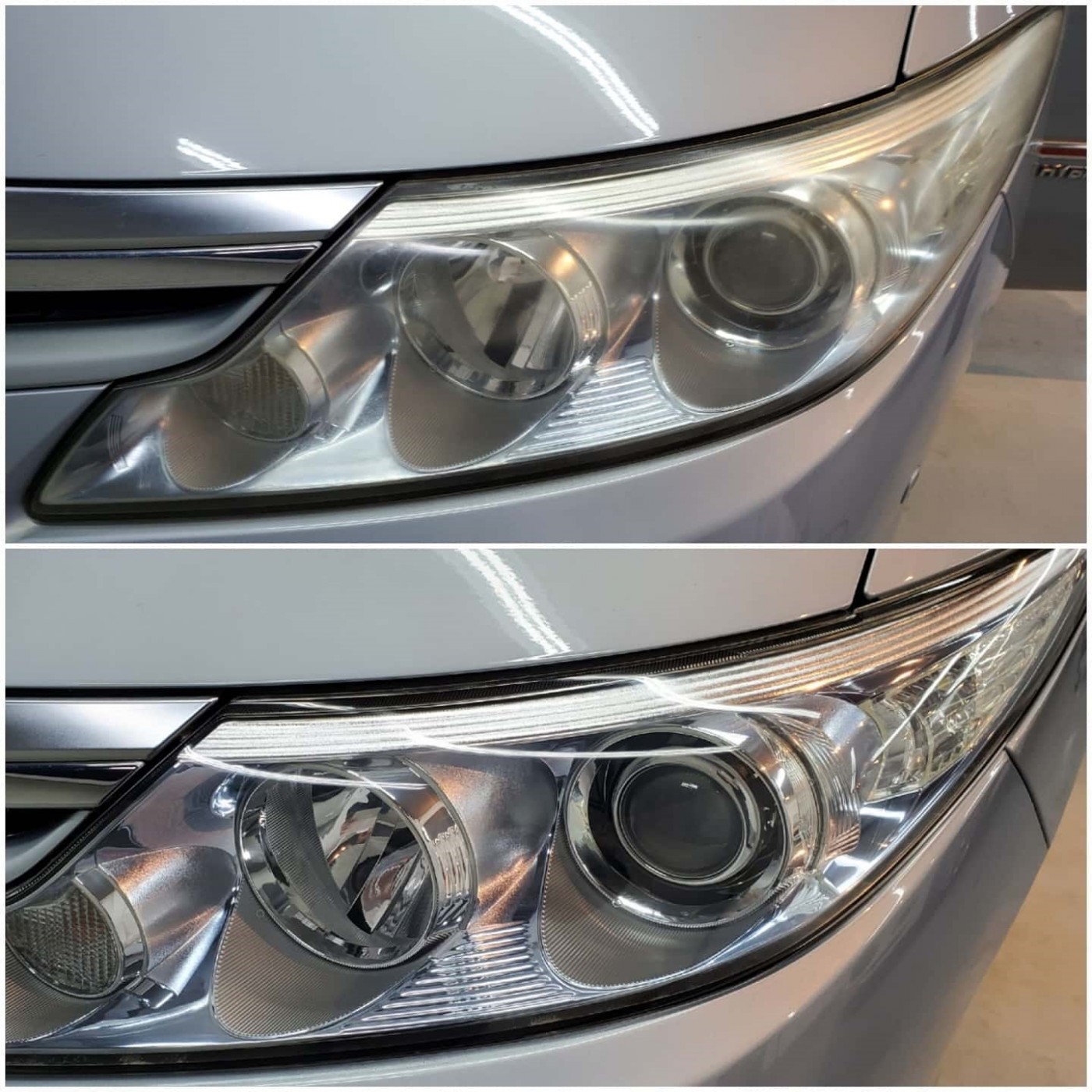 表面に被膜剤を塗布してヘッドライトリペア完了。