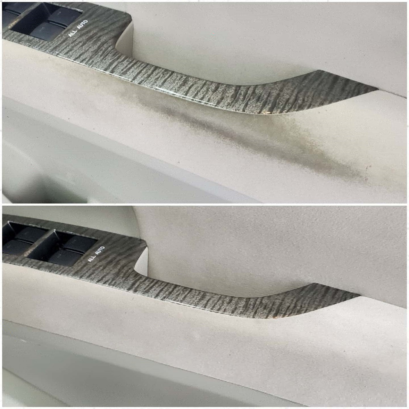 最後に車内の汚れ染みを落としながらの隅々クリーニングで施工完了。