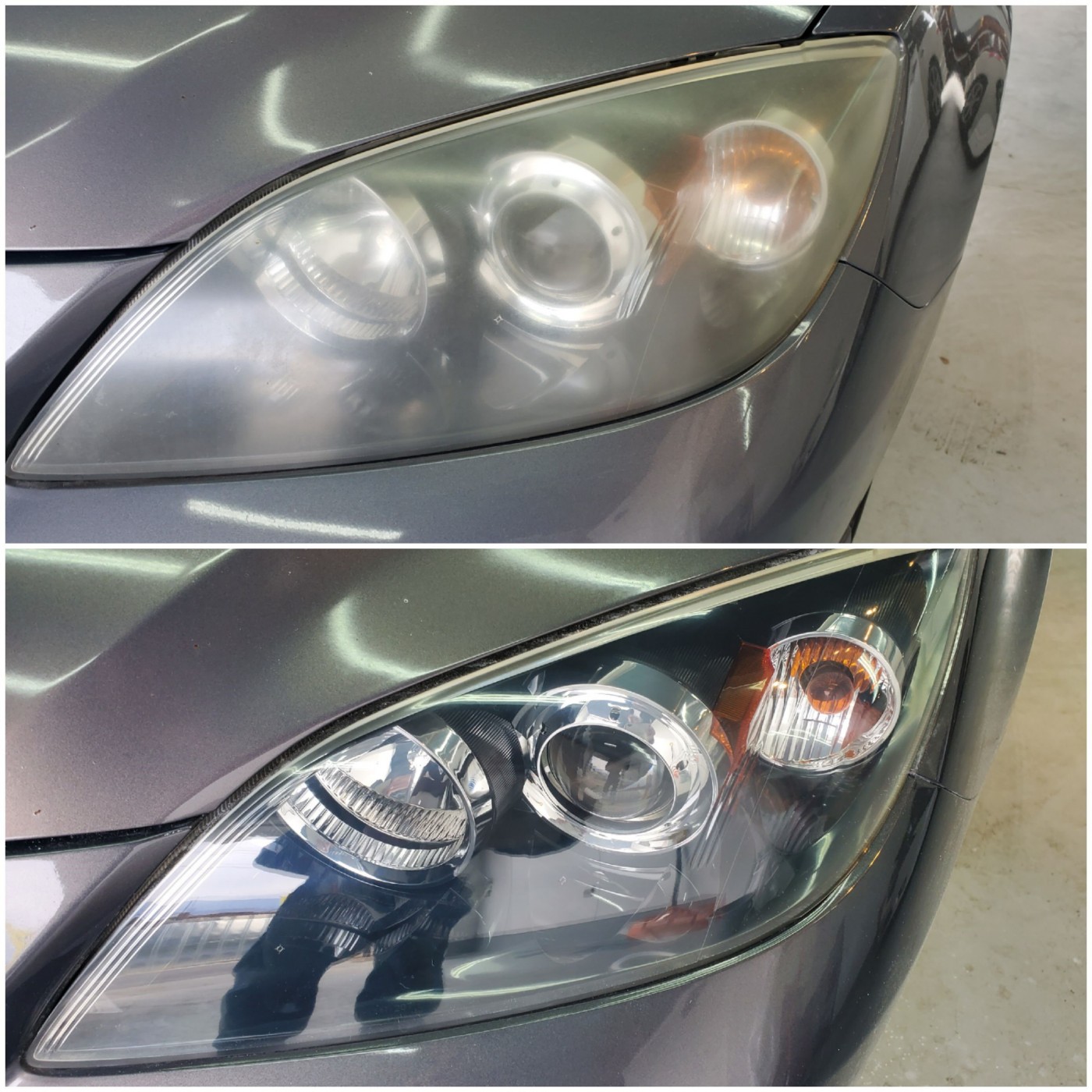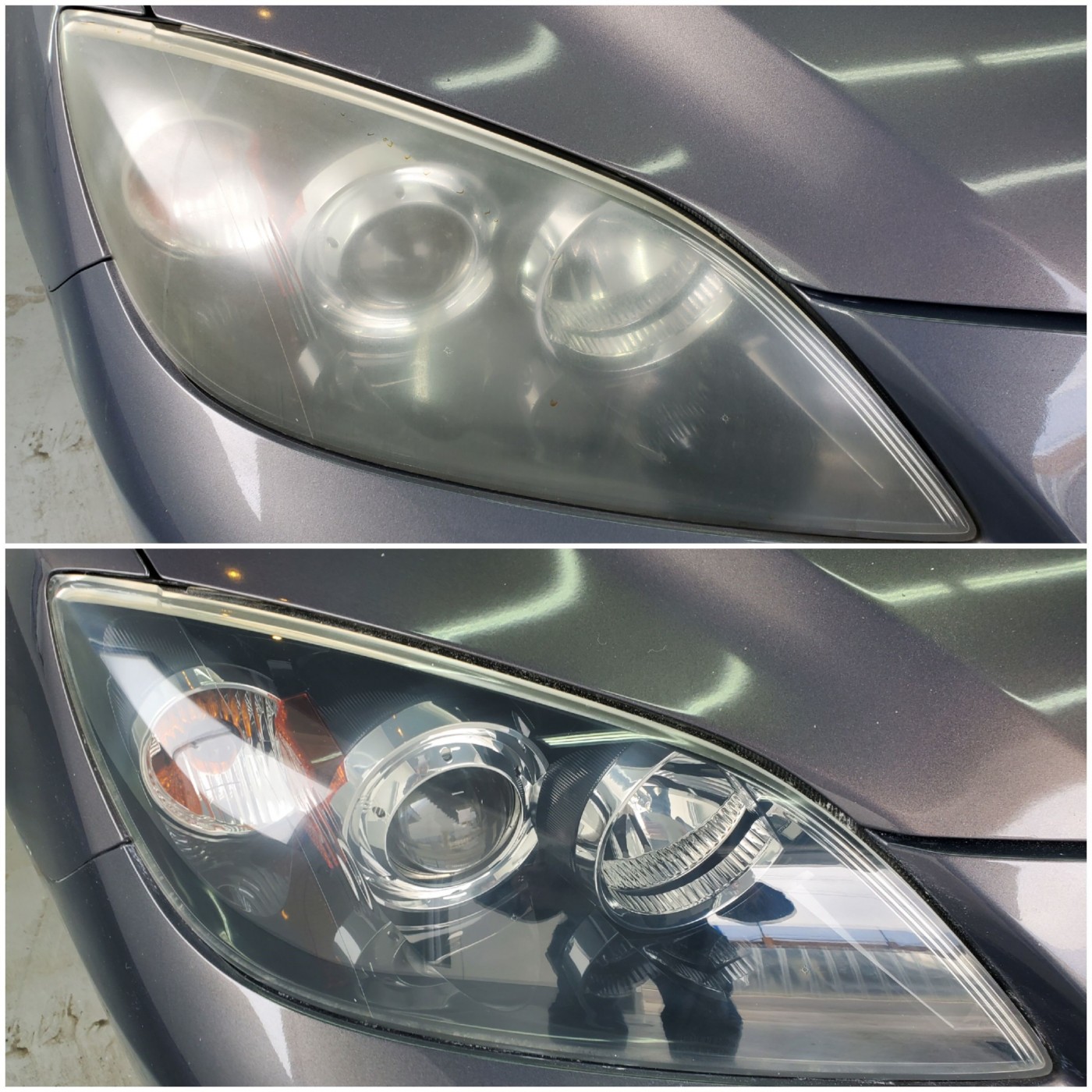 ヘッドライトの曇りをサンディングして曇り、黄ばみの原因を除去して