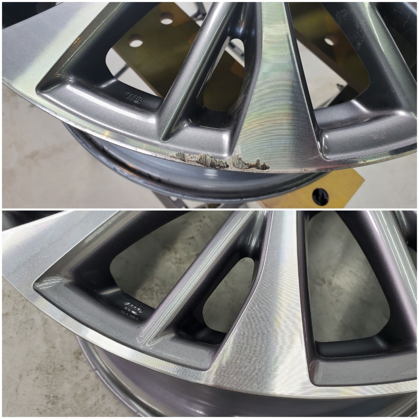 トータルリペアでは、ホイールの表面を切削する設備を完備しているのでダイヤカットホイールの