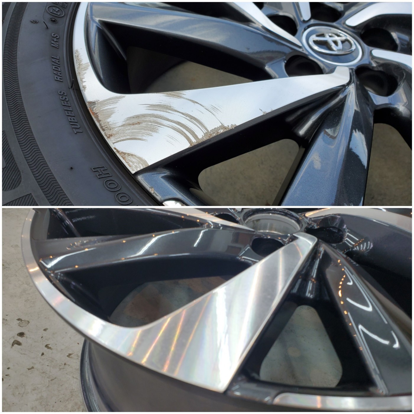 車を寄せすぎて縁石に擦ってしまいホイールをガリっと。。。