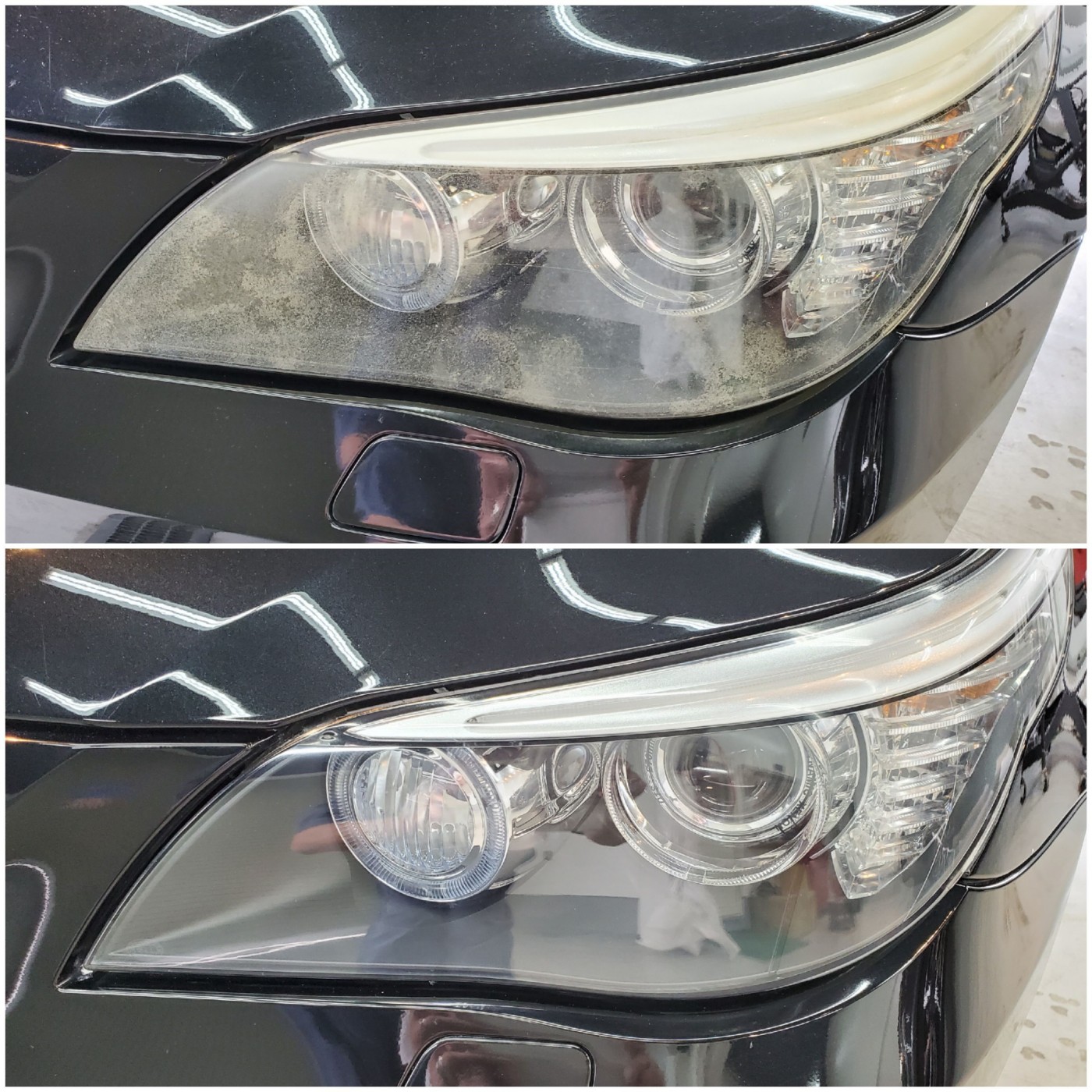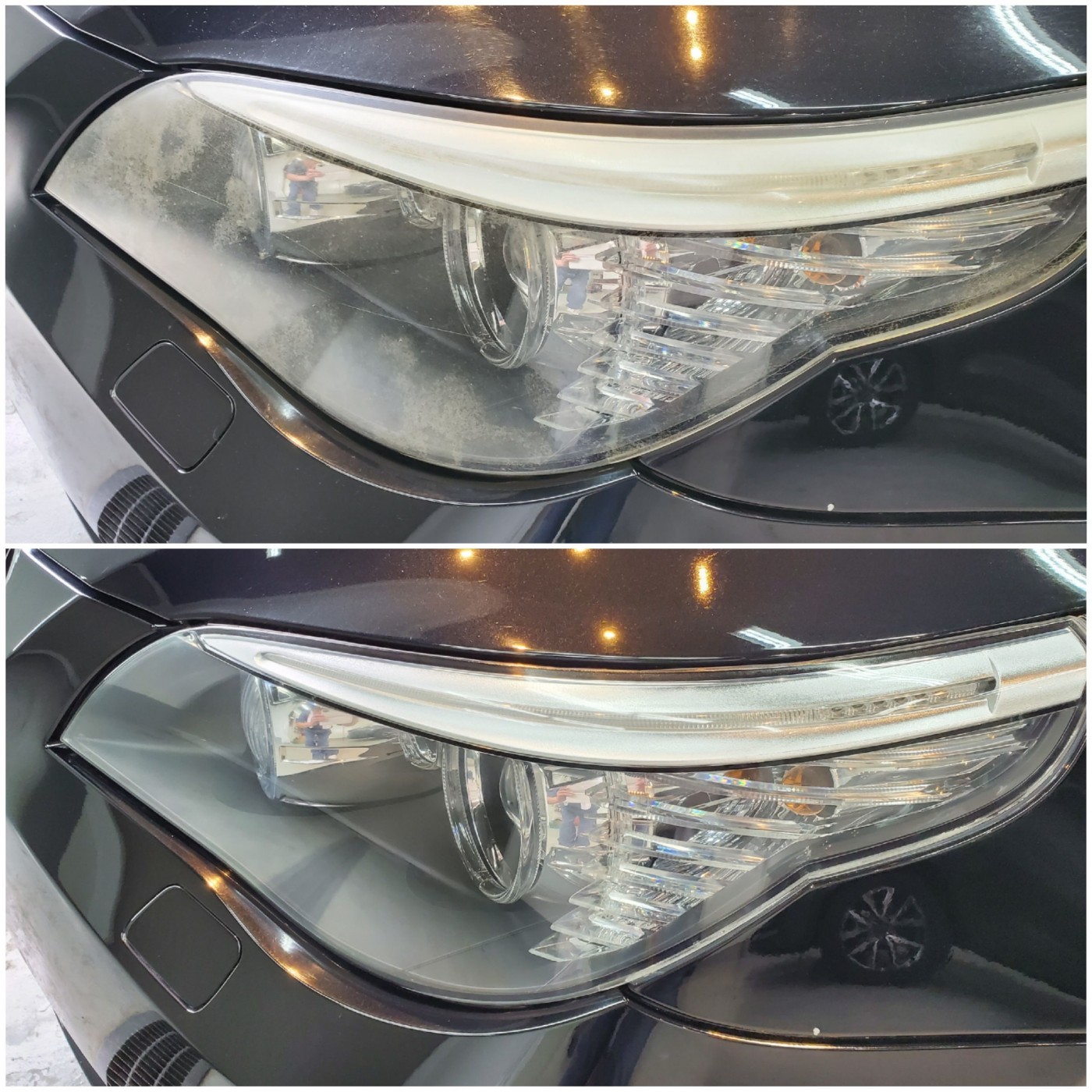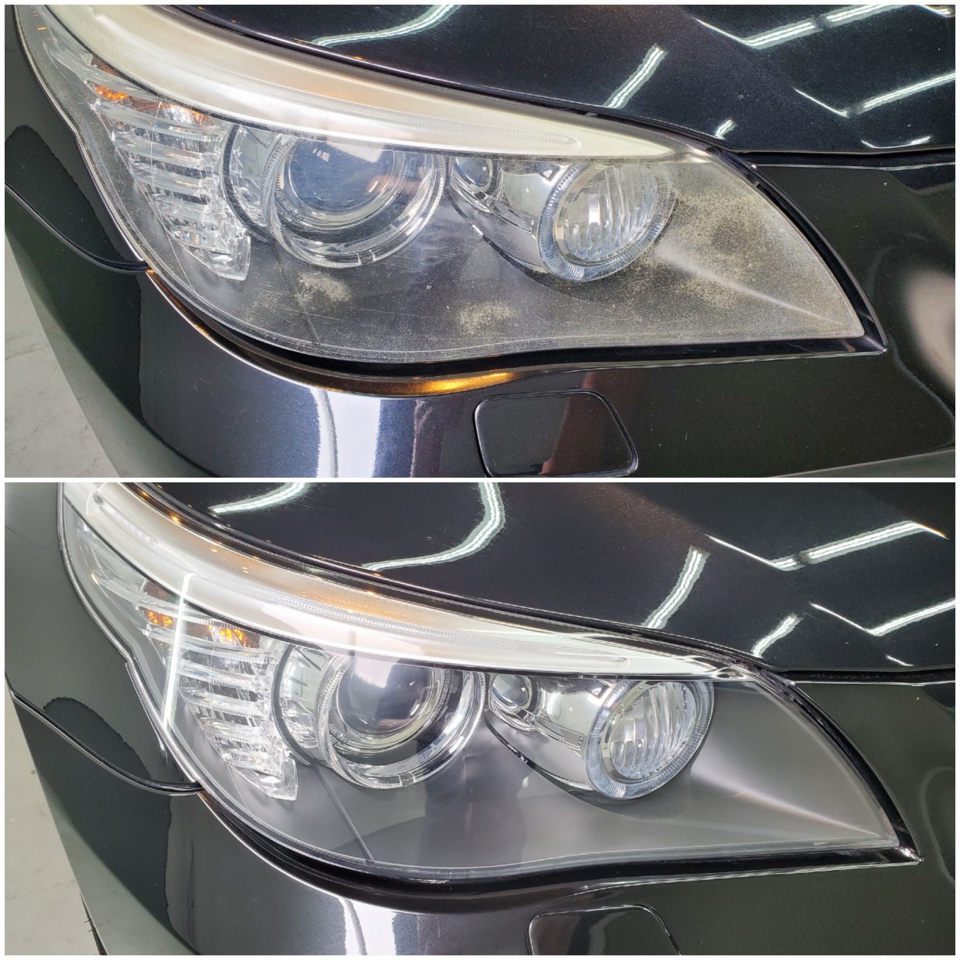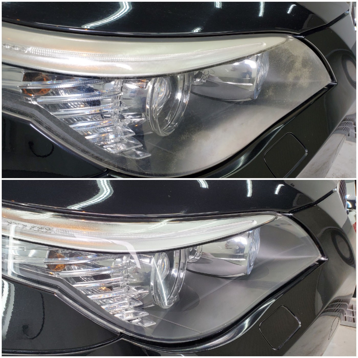 ヘッドライトの曇りと細かな擦り傷をサンディングして除去し、磨き上げにて透明感復活!!