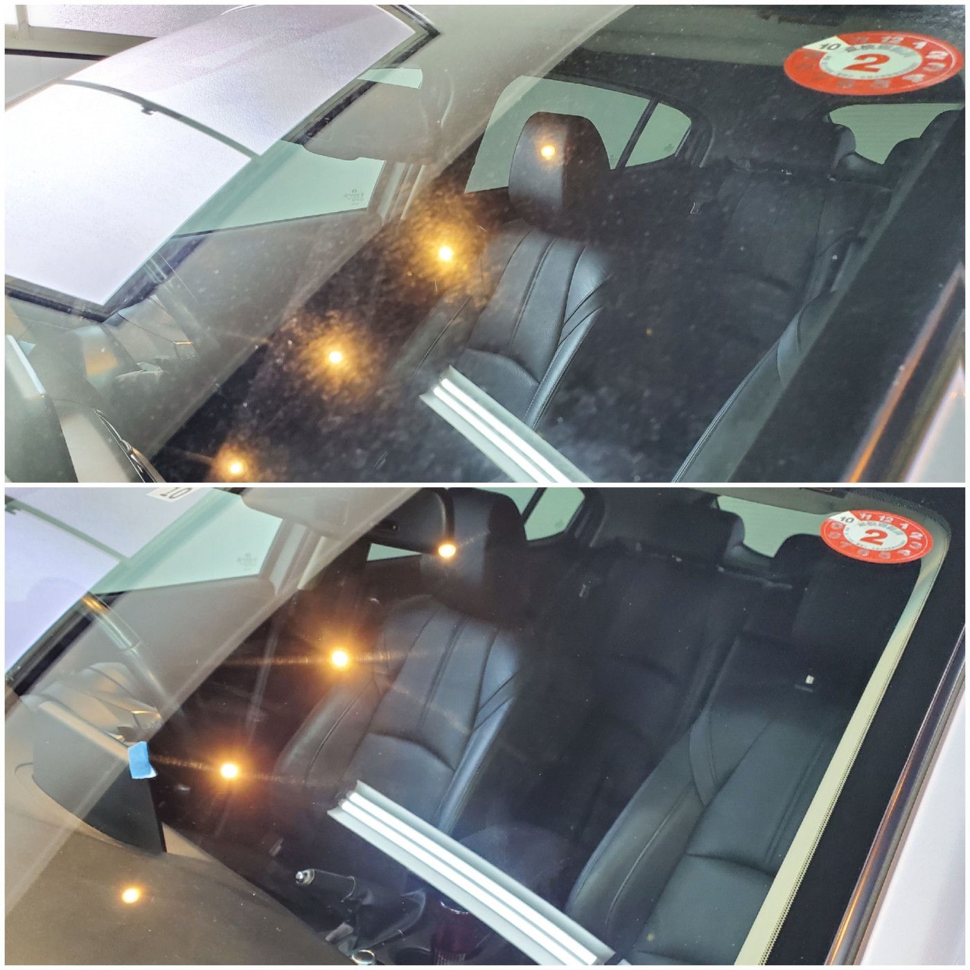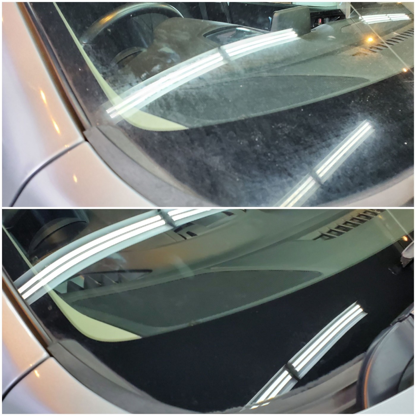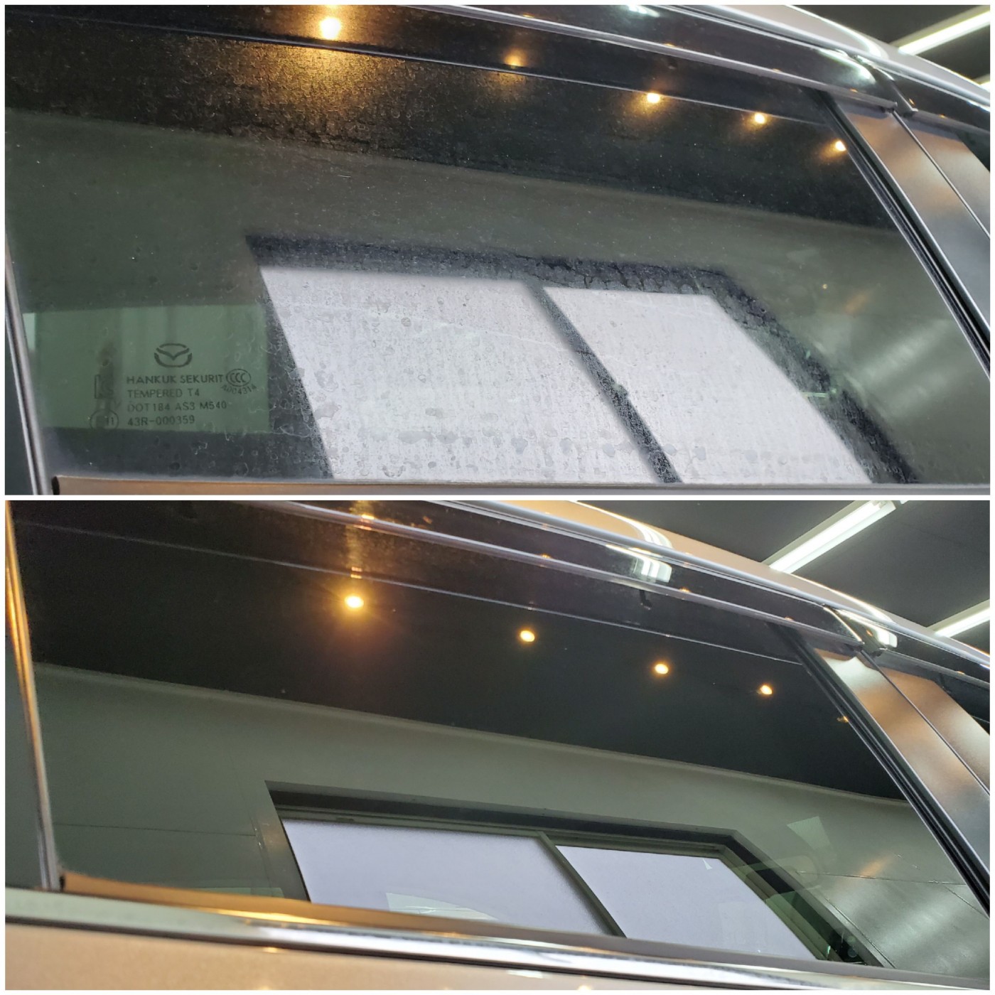 お車のガラス表面に出来た雨染みやウロコで視界が悪く見え難くなり。。。