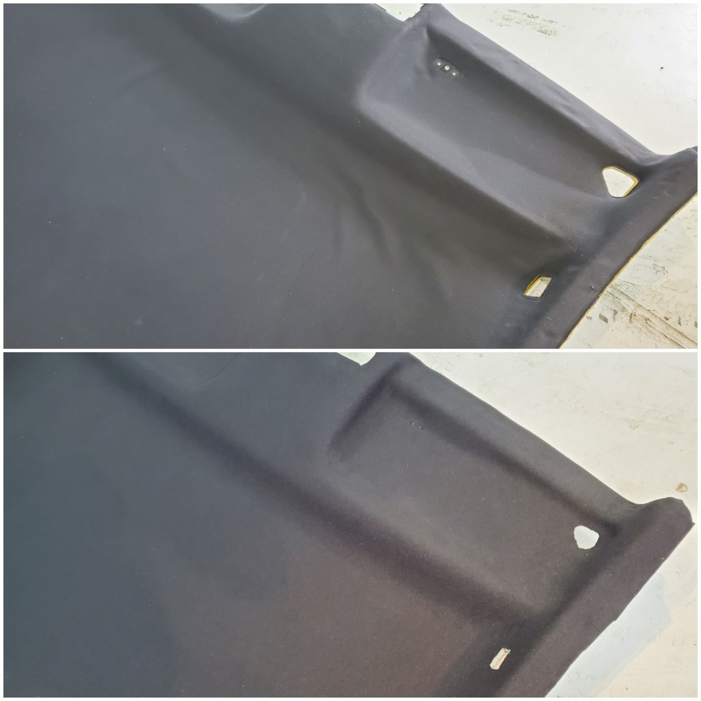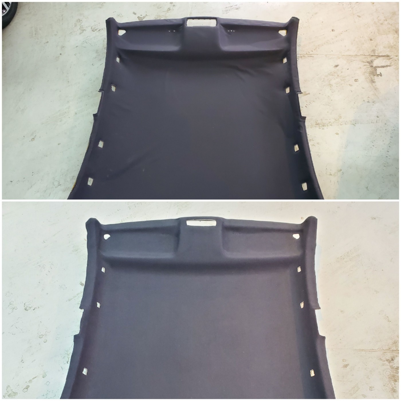 輸入車に多いルーフライニング剥がれのため、張替えのご依頼をいただき施工させて頂きました。