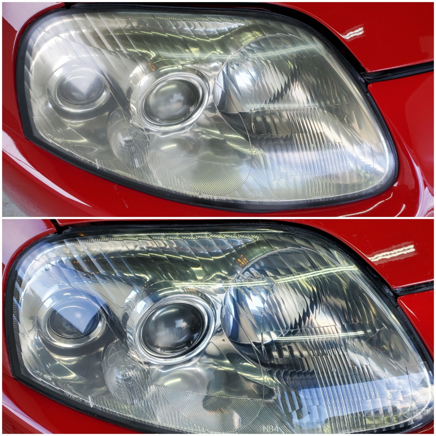 ヘッドライトの曇りをサンディングして曇り、黄ばみの原因を除去して