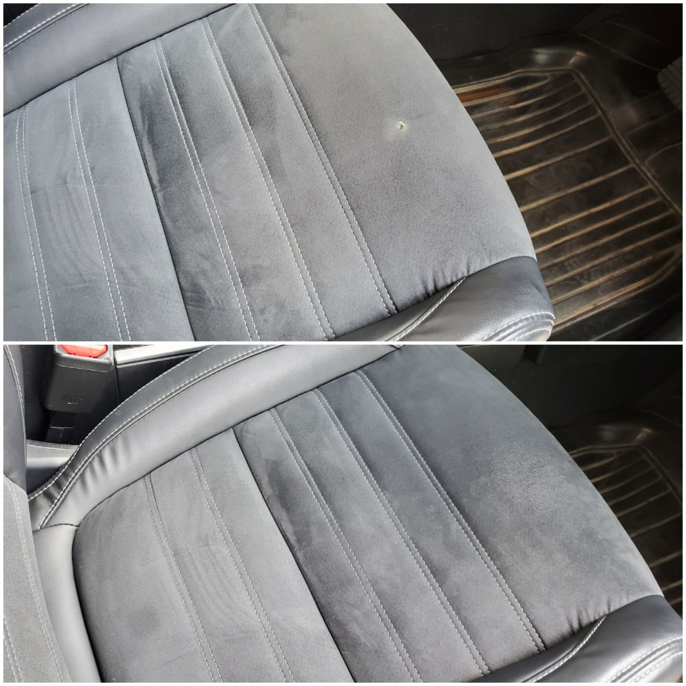 運転中に煙草の火種を落としてしまい焦げ穴が出来てしまったの事でのご依頼。