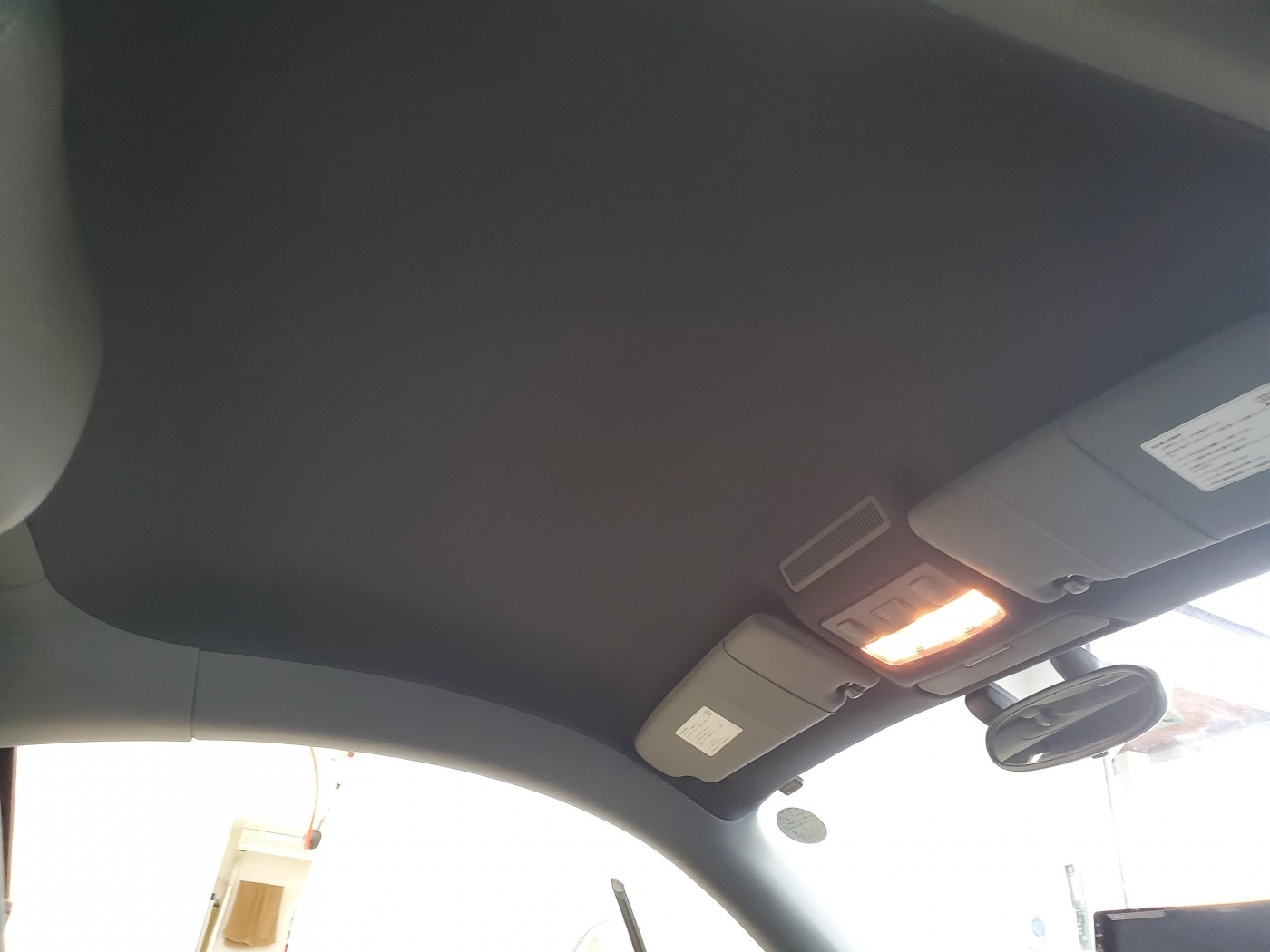 輸入車に多いルーフライニング剥がれのため、張替えのご依頼をいただき施工させて頂きました。
