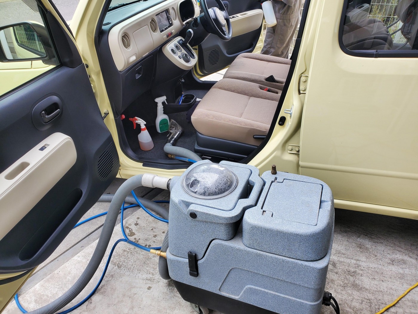 シート及び天井をスチームリンサーで洗浄した後、通常の車内クリーニングをして、最後にオゾン発生器による消臭/除菌を行いタバコのヤニ臭をしっかりと取り除きクリーンな車内に!!