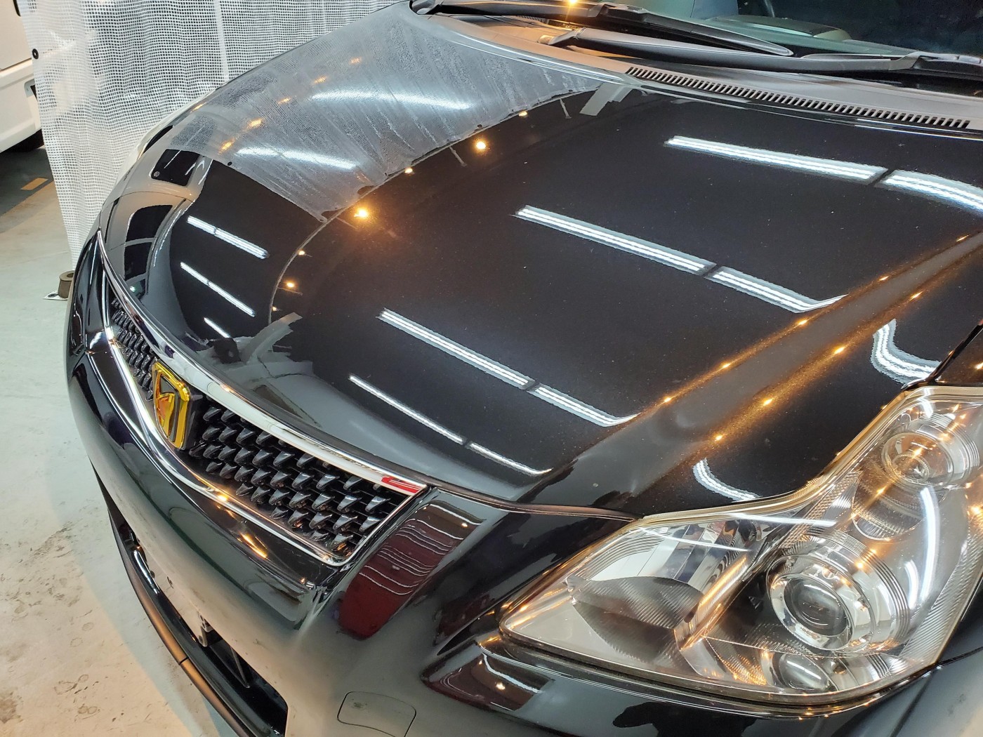 ボディークレンジングからの磨き上げで洗車傷等をリセットして、TAIMA(コーティング結合研磨液)にて下地処理をしっかりと行い、ガラスコーティングのグロスアーマーを塗り込みして施工完了!