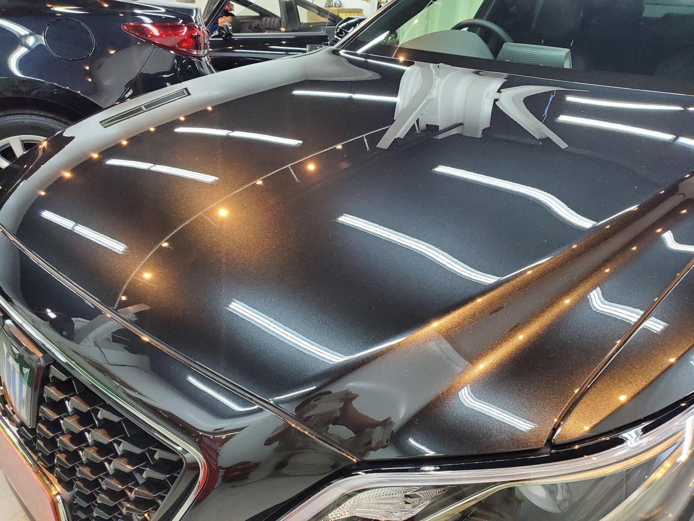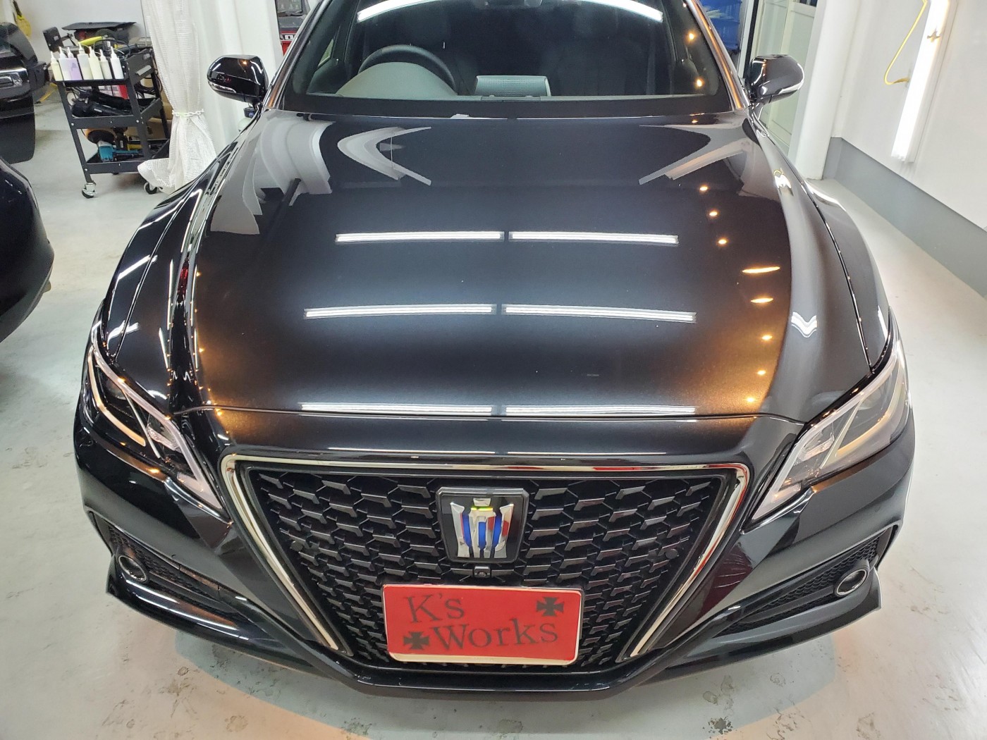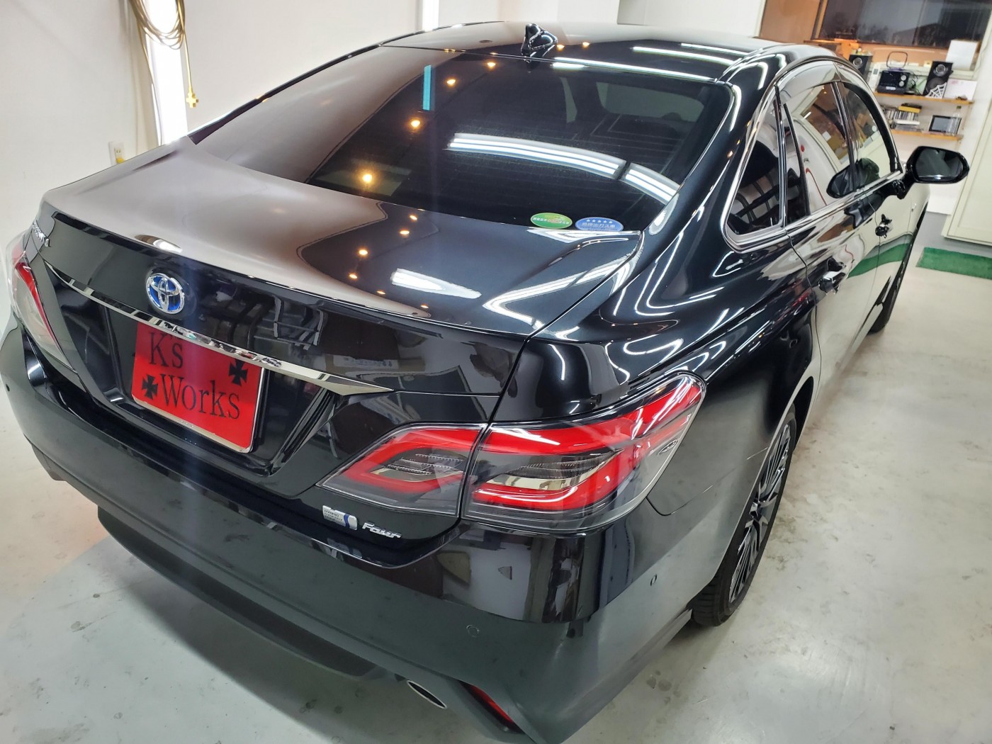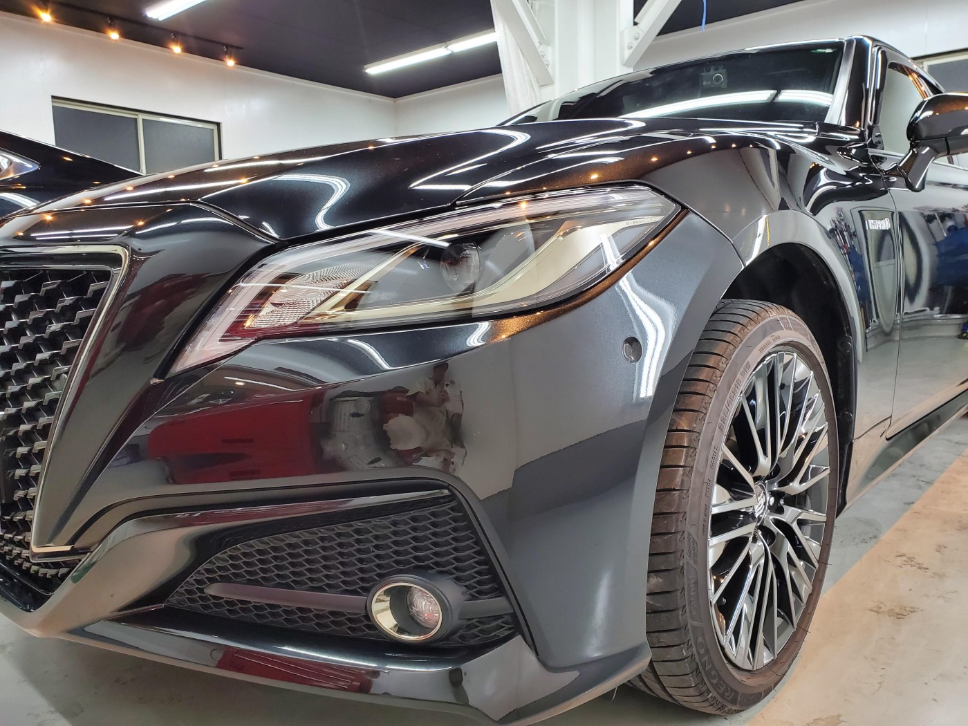 ボディークレンジングからの磨き上げで洗車傷等をリセットして、TAIMA(コーティング結合研磨液)にて下地処理をしっかりと行い、ガラスコーティングのグロスアーマーを塗り込みして施工完了!コーティング後に硬化促進剤を塗り込んでいるため当日納車も可能です。