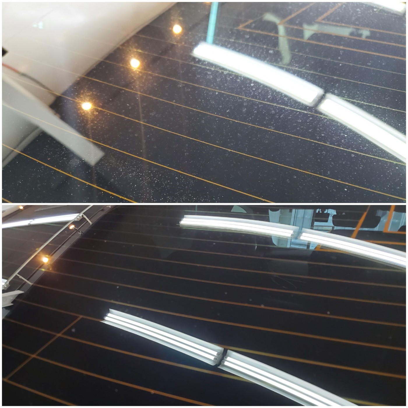 ウィンドウガラスの雨染みウロコを専用のクリーナーで綺麗に除去し視界をクリーンに!!