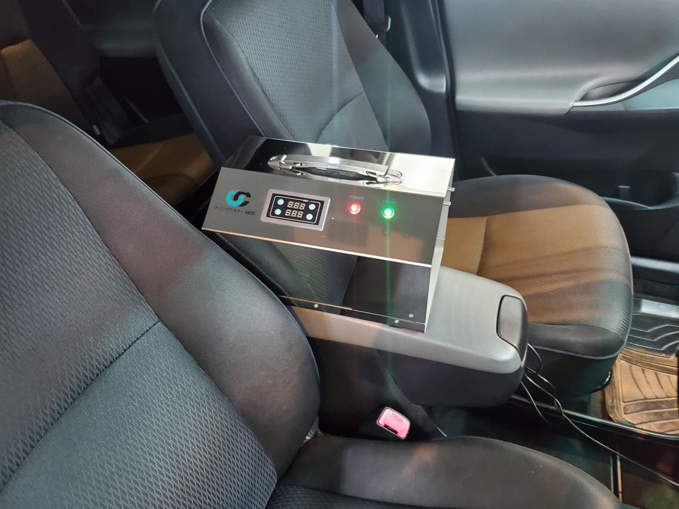 最後に車内を隅々クリーニングとオゾン発生器による除菌消臭で施工完了。