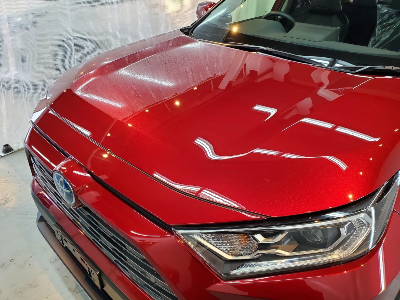 ボディークレンジングからの磨き上げで、細かな洗車傷等をリセットして、TAIMA(コーティング結合研磨液)にて下地処理をしっかりと行い、ガラスコーティングのグロスアーマーを塗り込みして施工完了!