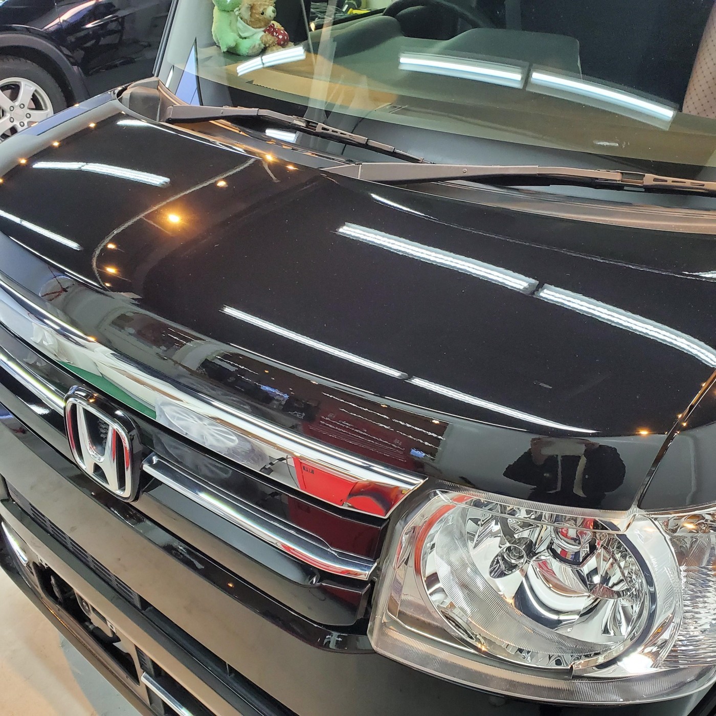 ボディークレンジングからの磨き上げで洗車傷等をリセットして、TAIMA(コーティング結合研磨液)にて下地処理をしっかりと行い、ガラスコーティングのグロスアーマーを塗り込みして施工完了!