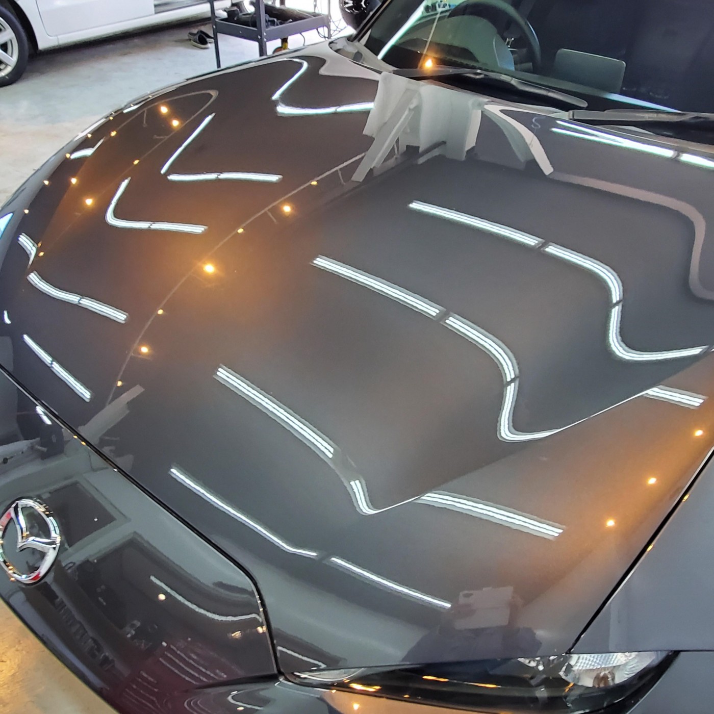 ボディークレンジングからの磨き上げとTAIMA(コーティング結合研磨液)にて下地処理をしっかりとして、ガラスコーティングのグロスアーマーを塗り込みして施工完了!