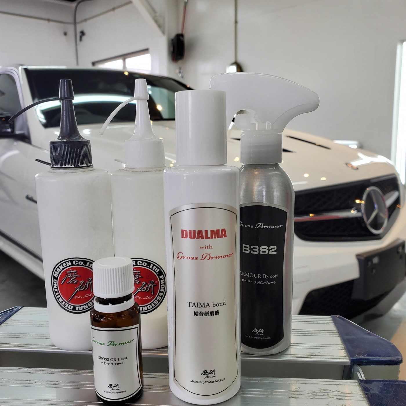 ボディークレンジングからの磨き上げとTAIMA(コーティング結合研磨液)にて下地処理をしっかりとしてボディーについた傷や洗車傷などをリセットし、ガラスコーティングのグロスアーマーを塗り込みして施工完了!