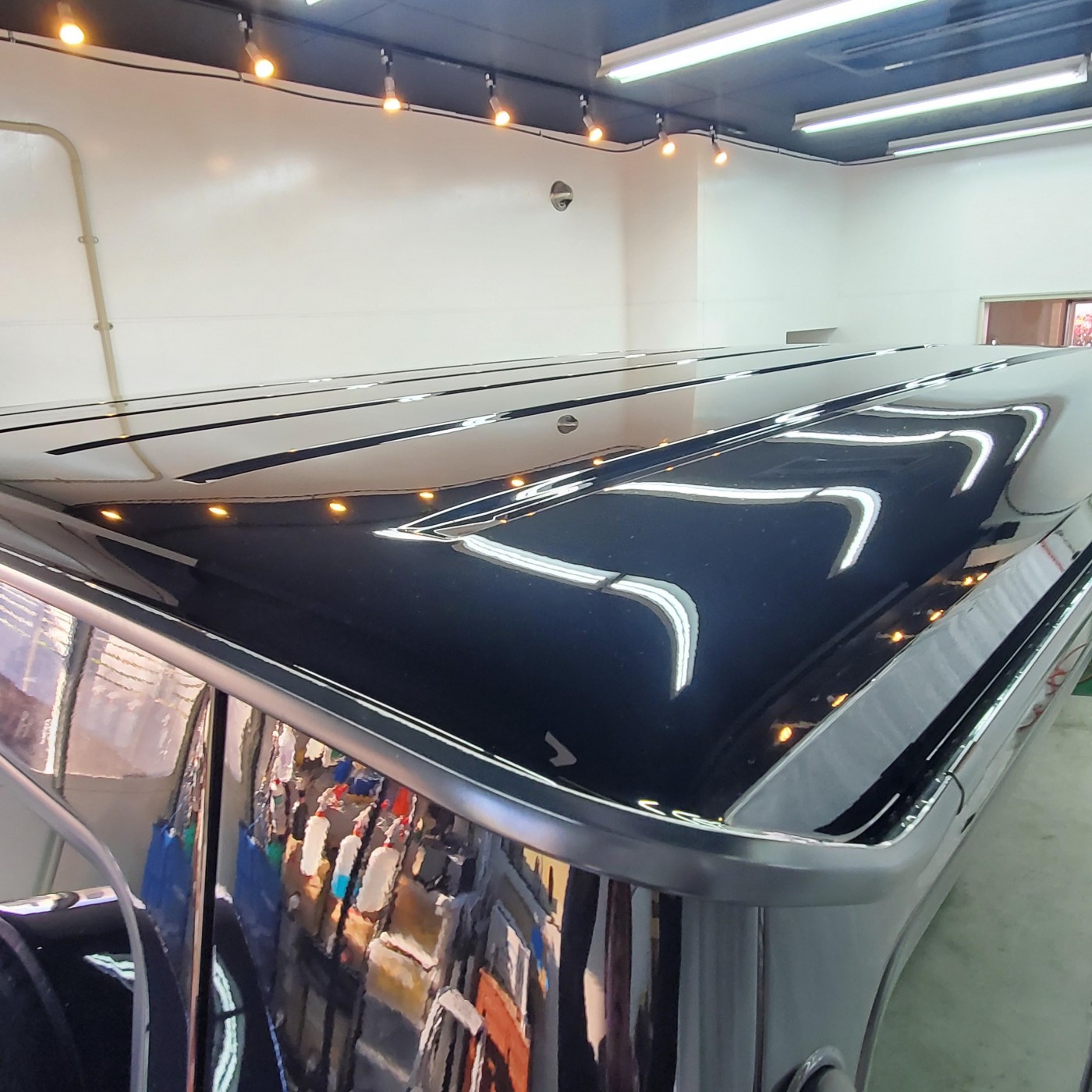 ボディークレンジングからの磨き上げとTAIMA(コーティング結合研磨液)にて下地処理をしっかりとしてボディーについた傷や洗車傷などをリセットし、ガラスコーティングのグロスアーマーを塗り込みして施工完了!