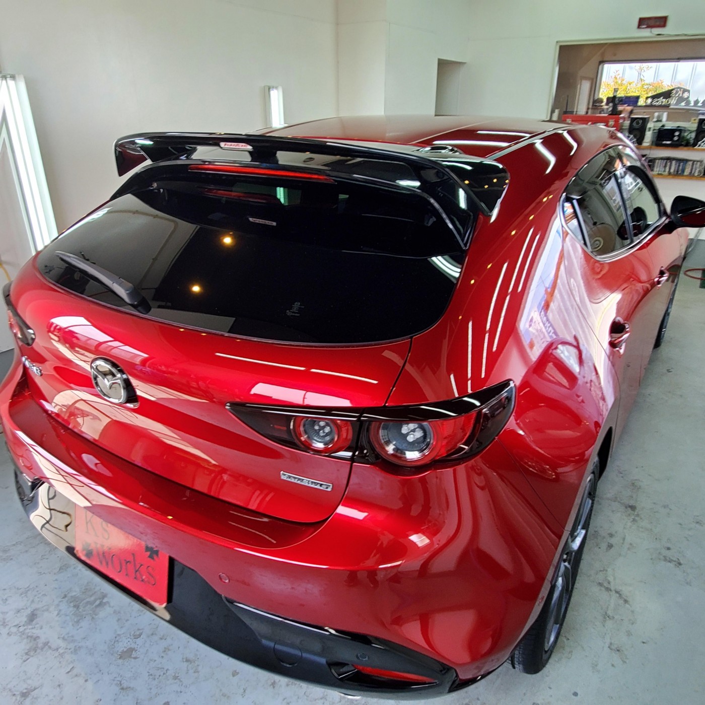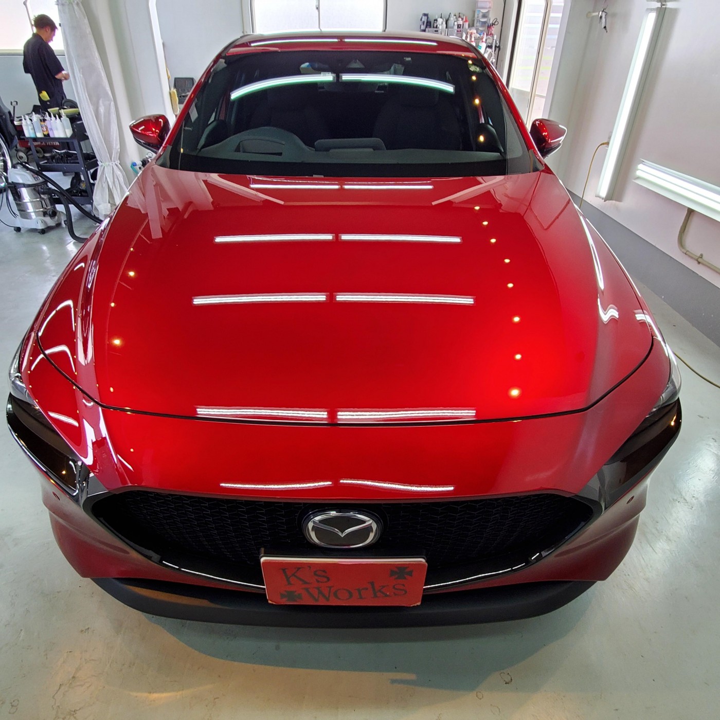 ボディークレンジングからの磨き上げとTAIMA(コーティング結合研磨液)にて下地処理をしっかりとしてボディーについた傷や洗車傷などをリセットし、ガラスコーティングのグロスアーマーを塗り込みして施工完了!
