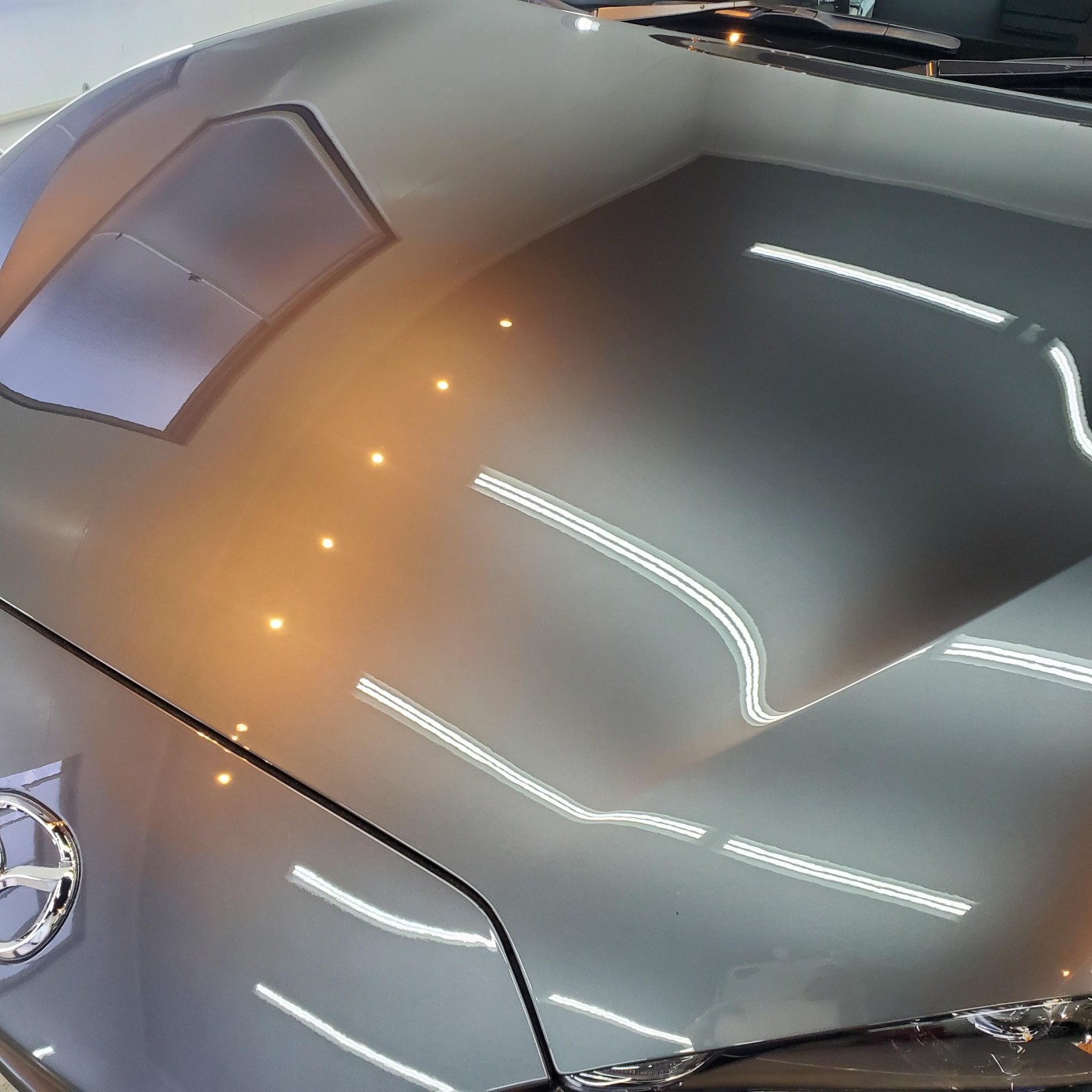 ボディークレンジングからの磨き上げとTAIMA(コーティング結合研磨液)にて下地処理をしっかりとしてボディーについた傷や洗車傷などをリセットし、ガラスコーティングのグロスアーマーを塗り込みして施工完了!