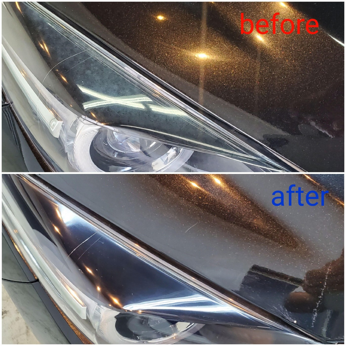 先ずは、表面のハードコートをサンディングして黄ばみ、くすみ、細かな擦り傷をしっかりと除去してから磨き仕上げ、最後に皮膜材を塗り込んで施工完了!