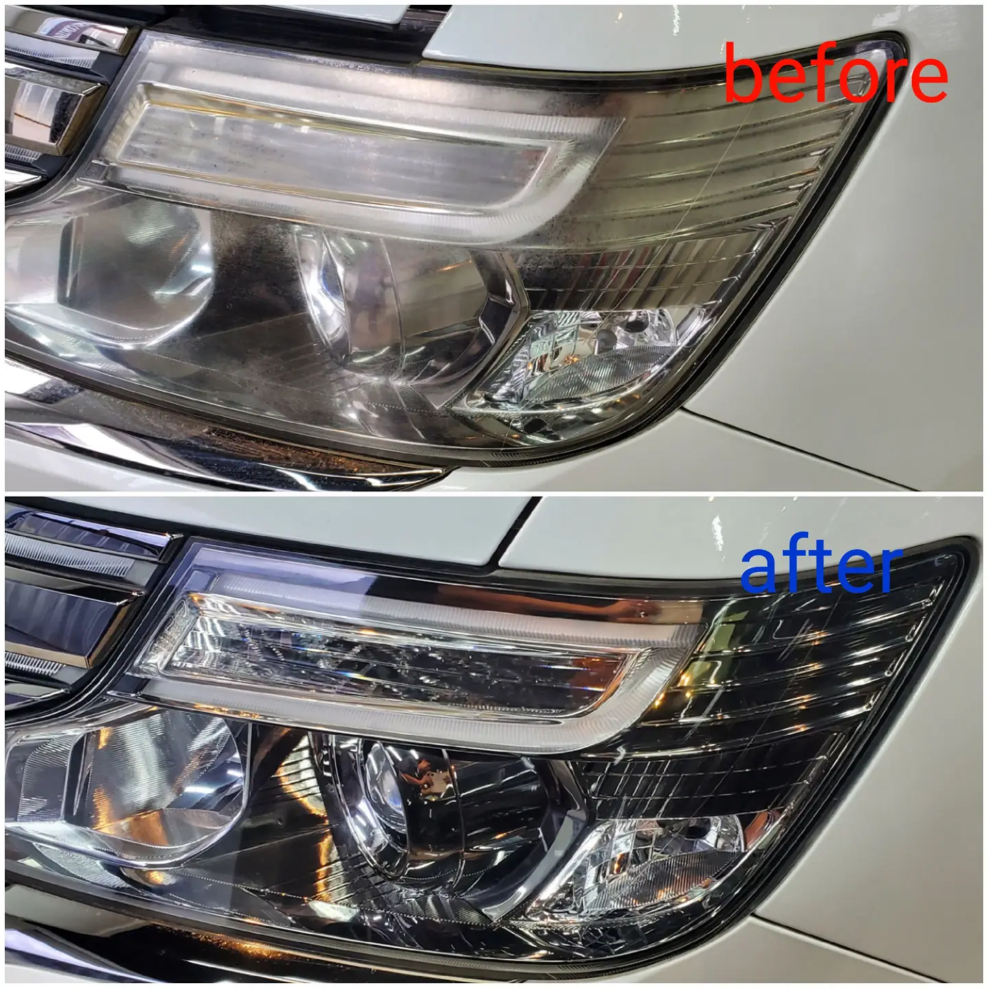 透明感が復活したヘッドライトを見たオーナー様より、仕上がりをとても喜んでいただきました。