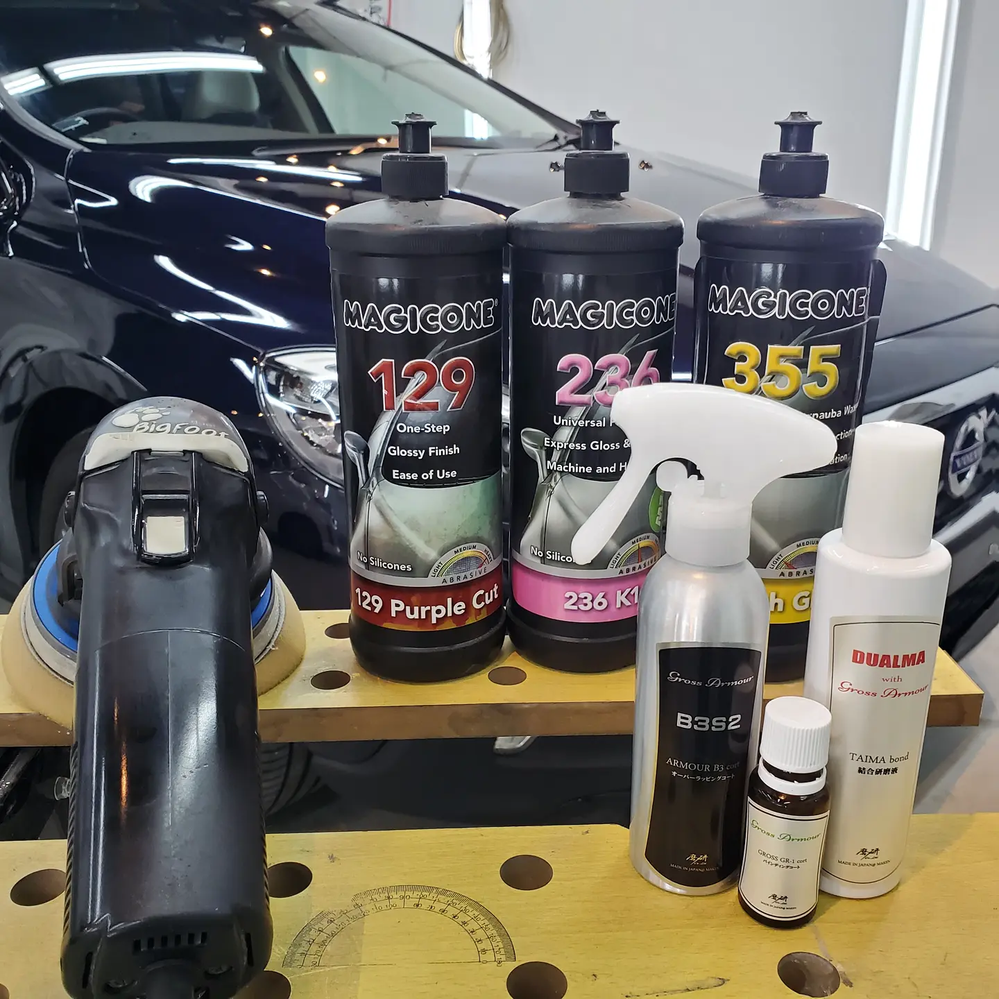 ボディークレンジングからの磨き上げとTAIMA(コーティング結合研磨液)にて下地処理をしっかりとしてボディーについた傷や洗車傷などをリセットし、ガラスコーティングのグロスアーマーを塗り込みして施工完了!