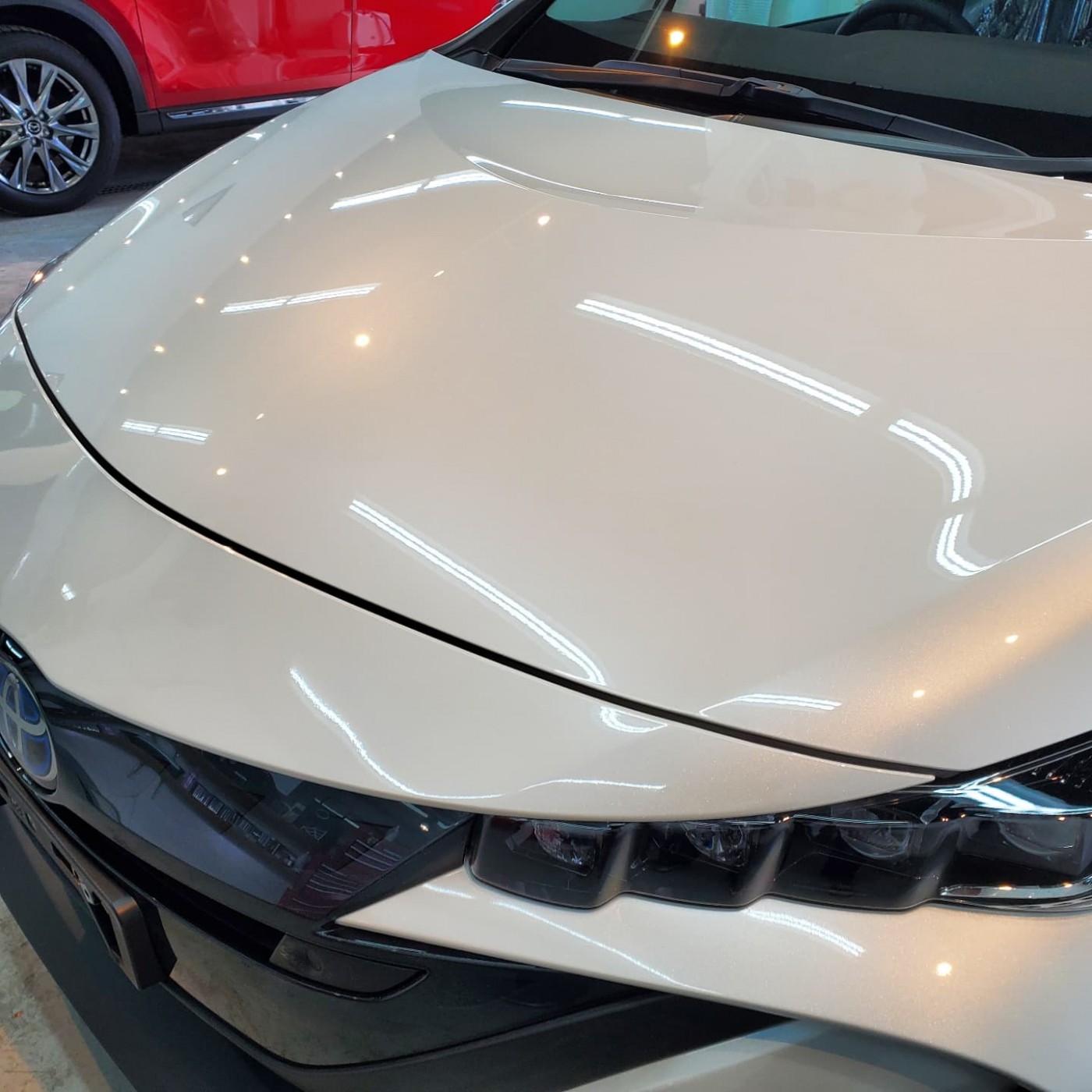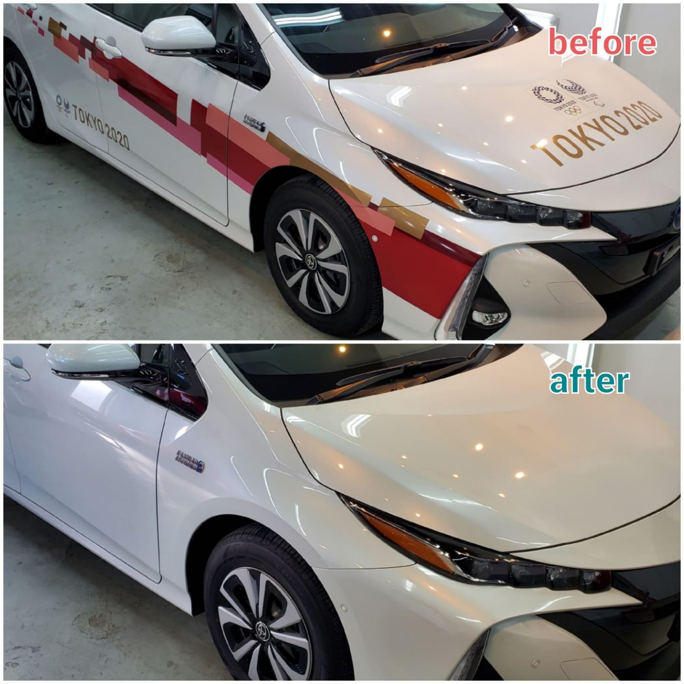オリンピックのデモカーだった車両のカッティングシートを剥がして、ボディークレンジング&鉄粉除去からのボディーの磨き上げをして細かな洗車傷等をリセット!