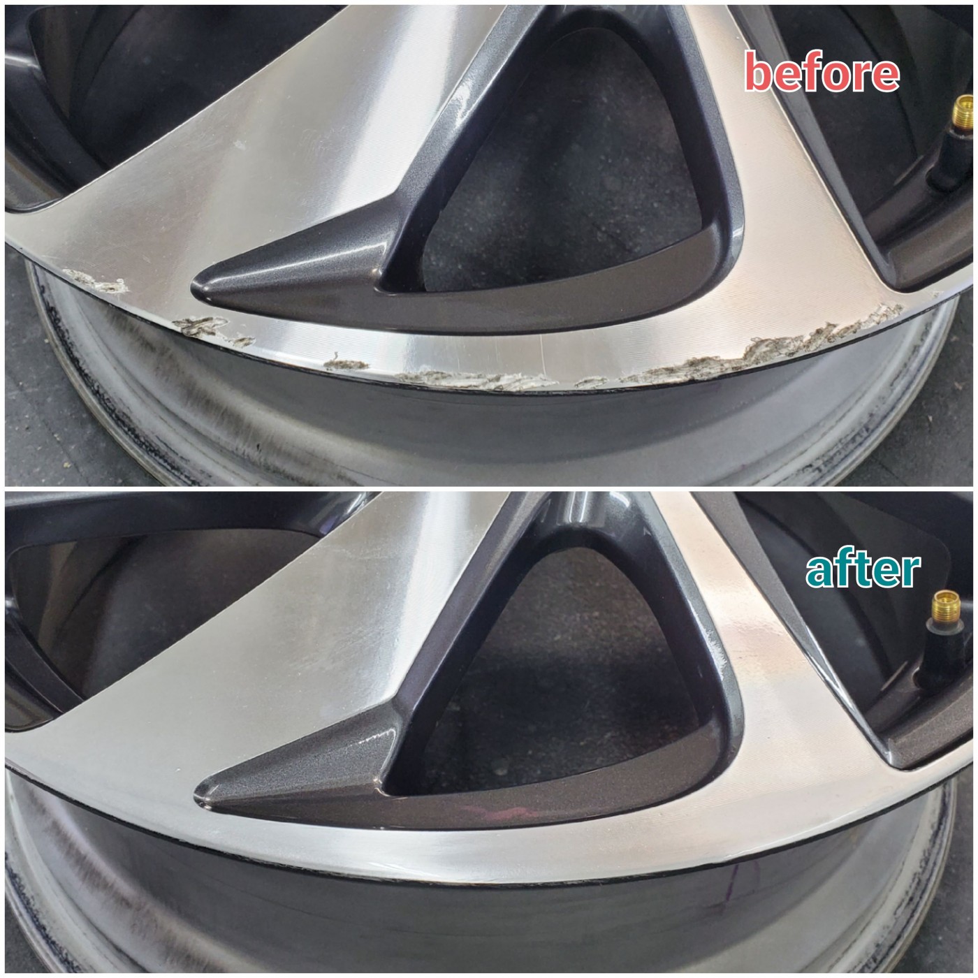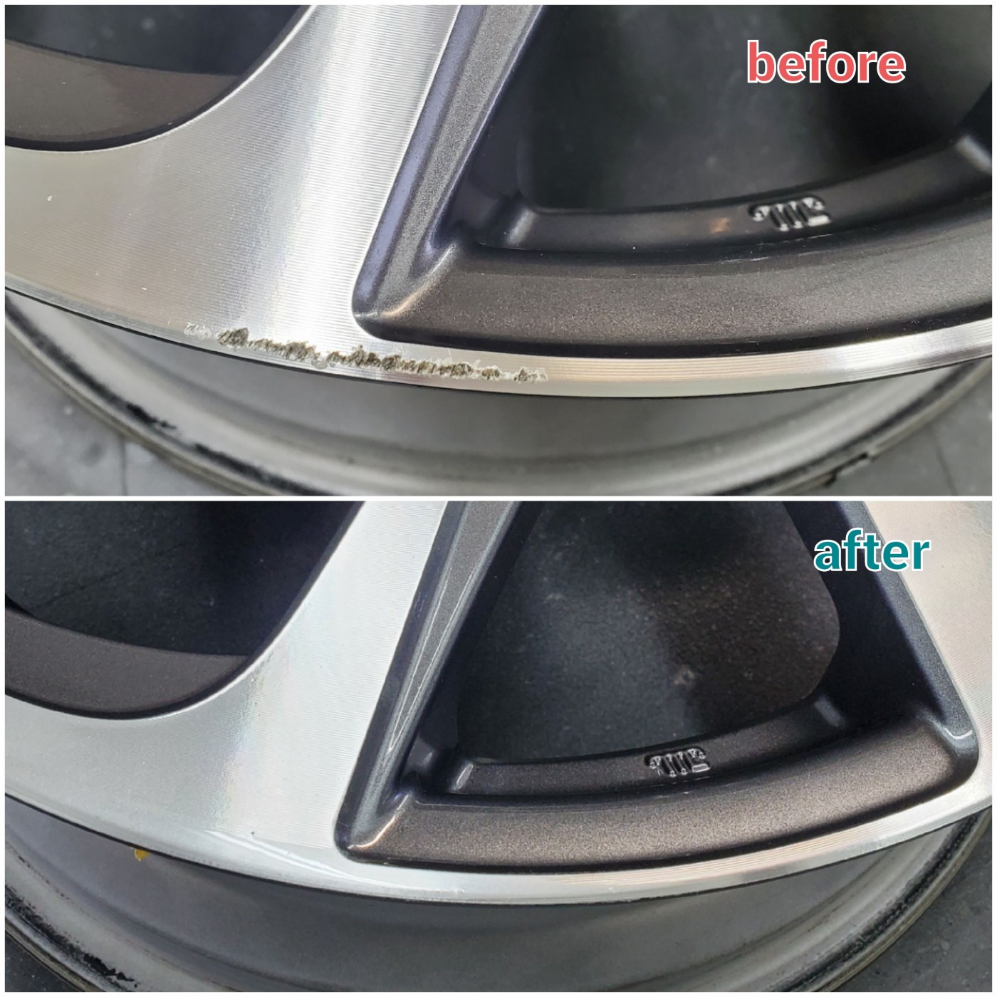 当社では、ダイヤカット処理の再加工も可能ですが、今回はリーズナブルなポリッシュ風の塗料で塗装仕上げにてリペアいたしました。