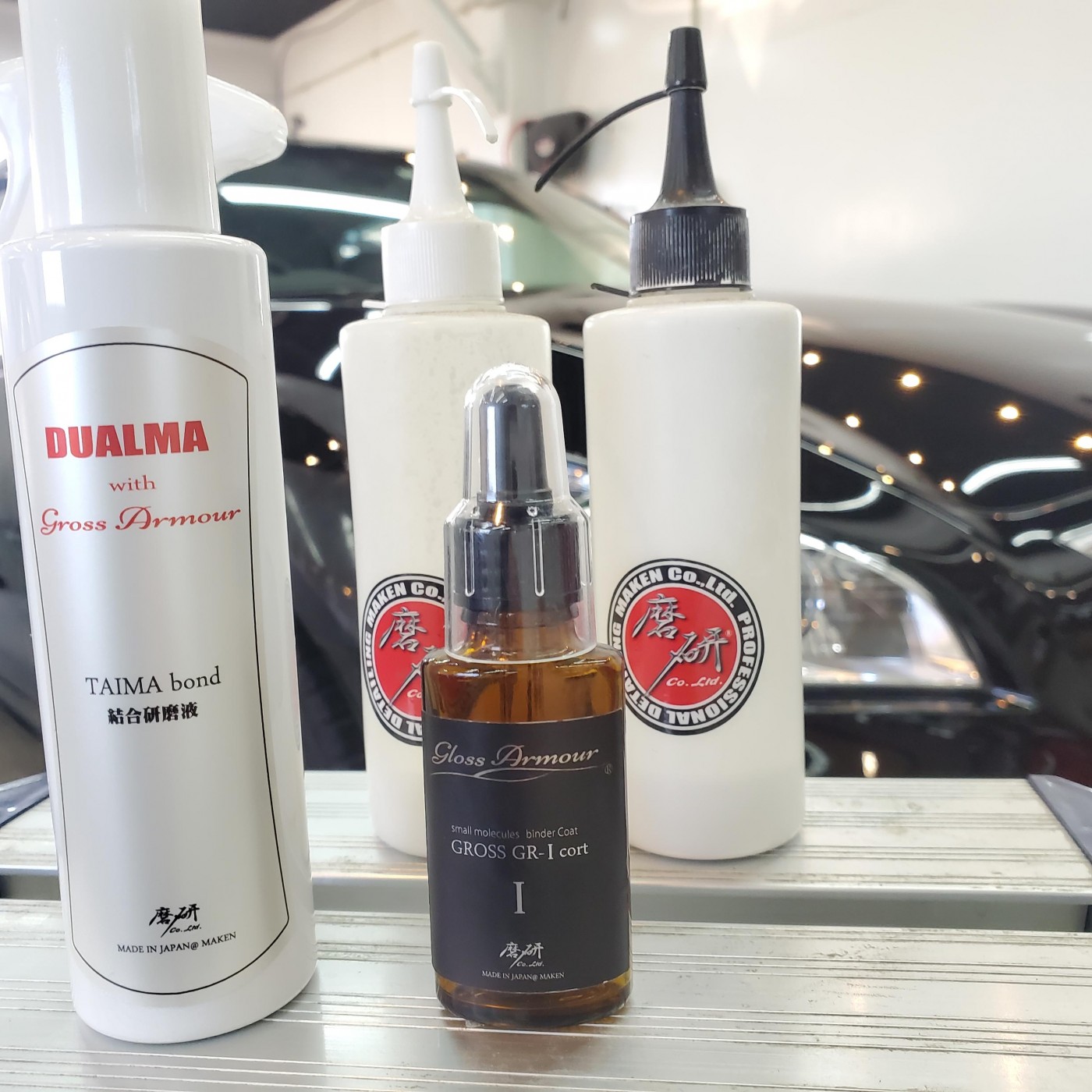ボディークレンジングからの磨き上げとTAIMA(コーティング結合研磨液)にて下地処理をしっかりとしてボディーについた傷や洗車傷などをリセットし、ガラスコーティングのグロスアーマーを塗り込みして施工完了!
